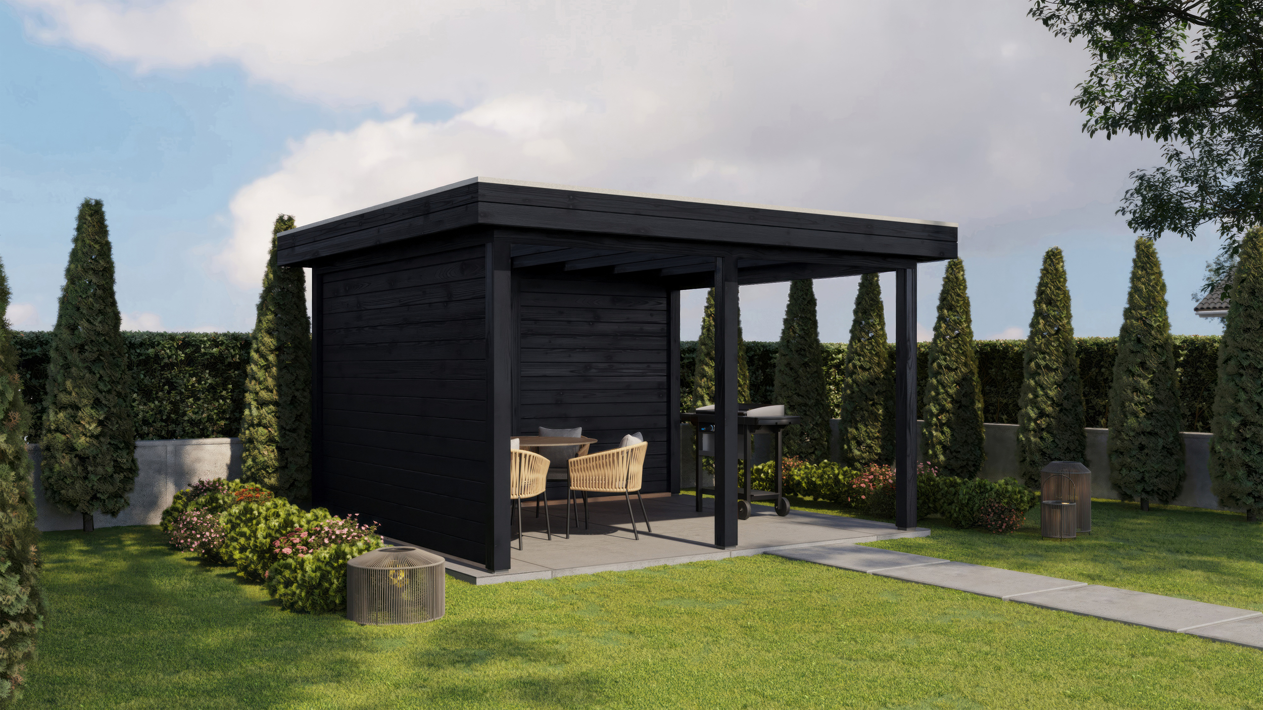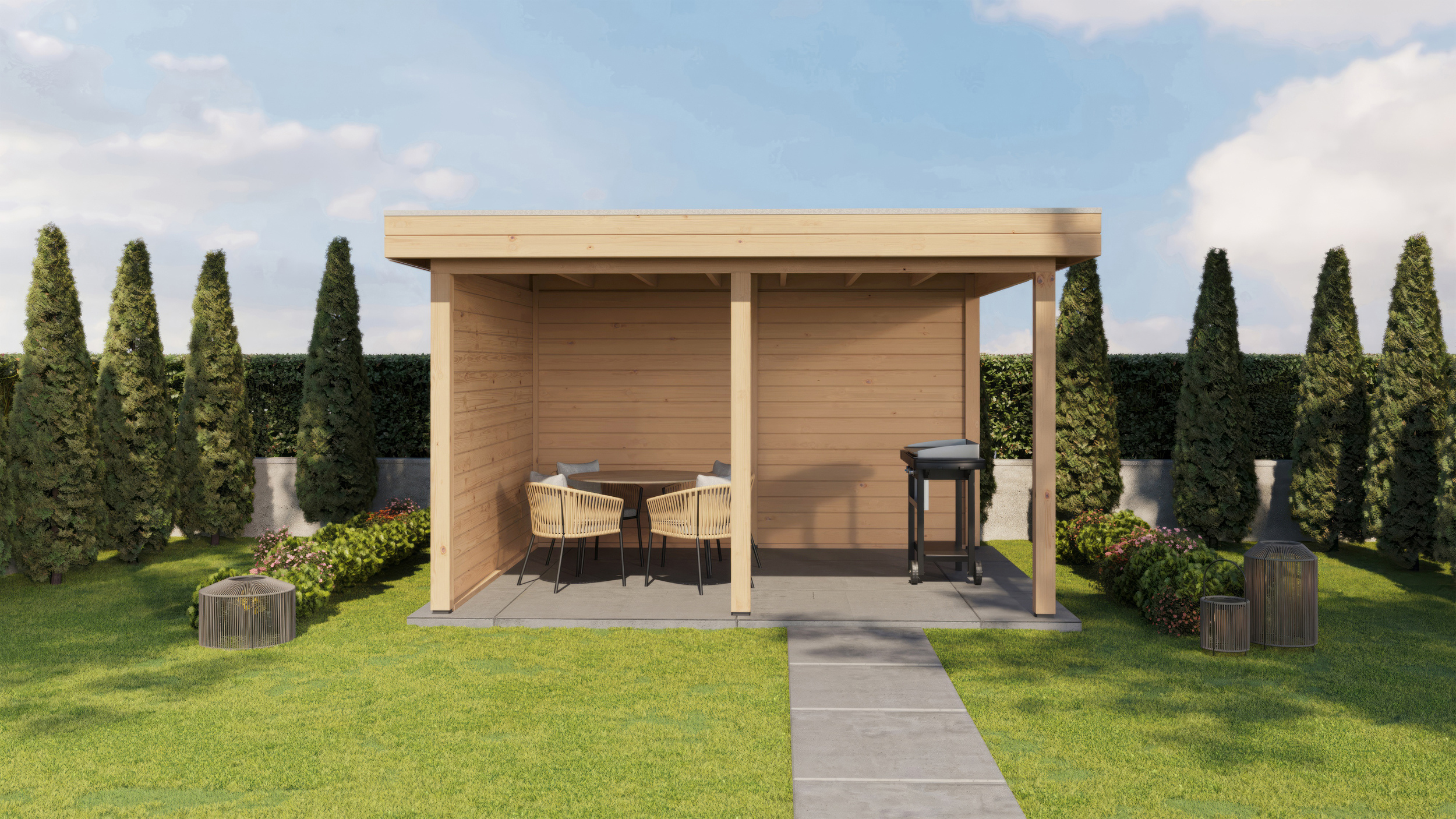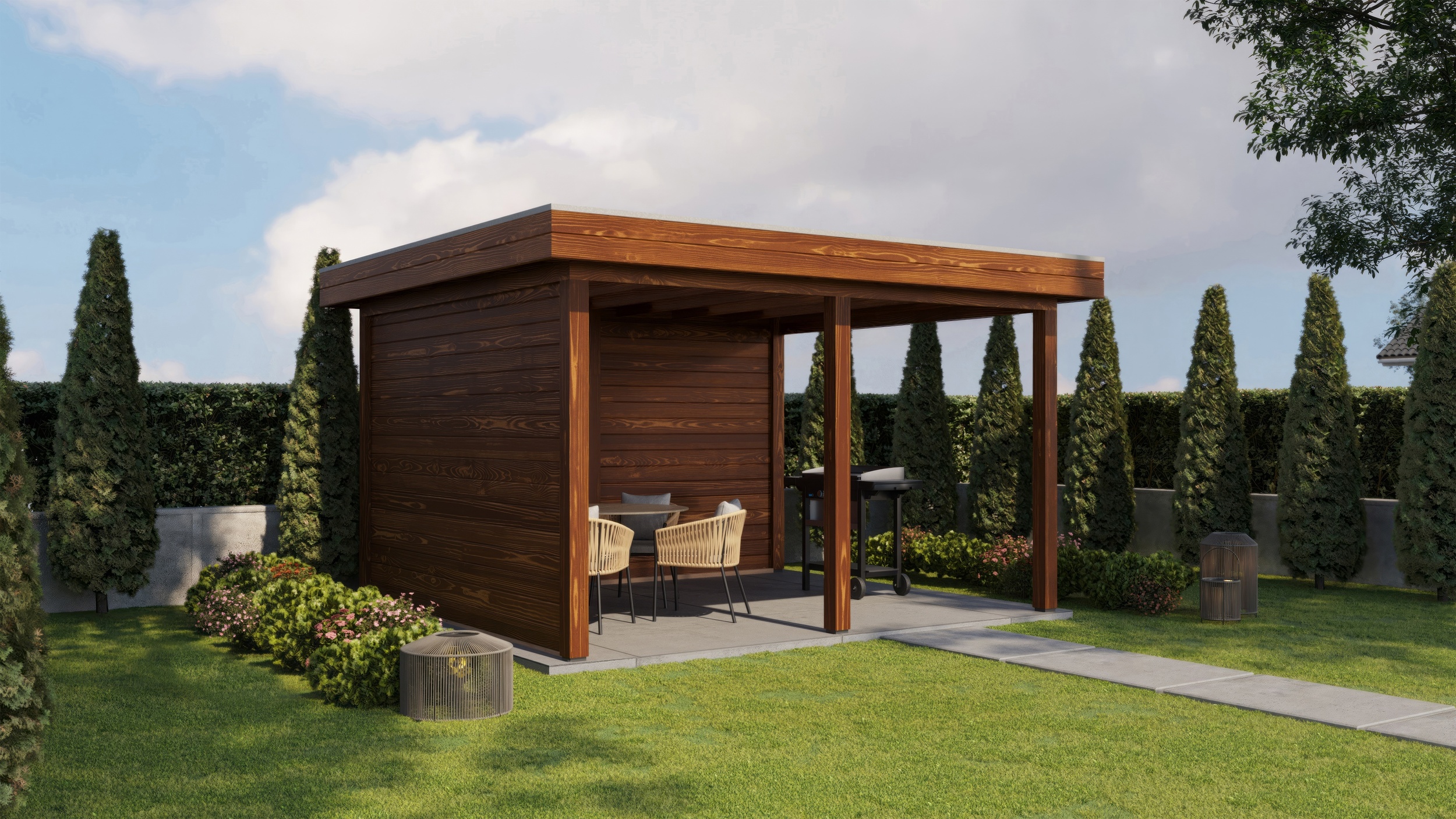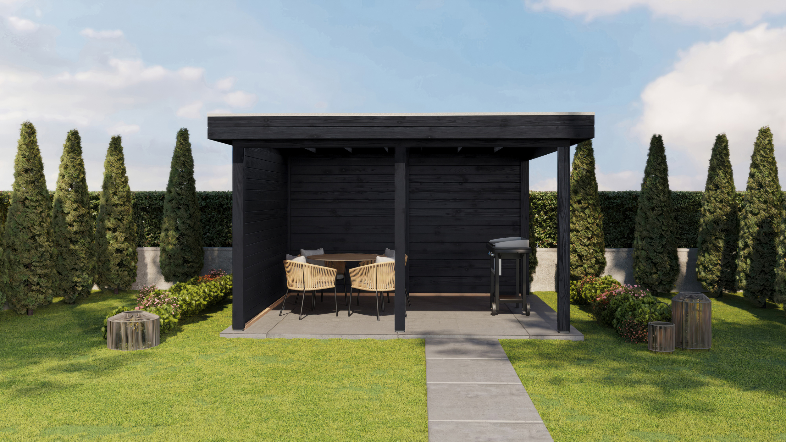 Sometimes you know exactly what you need: a garden building that fits seamlessly into your outdoor space. With the Lugarde Select Gazebo collection, you can create a stylish and comfortable area that perfectly complements your home or garden. Thanks to the flat roof and fixed walls at the back and side, you are well protected from rain, wind and sun.