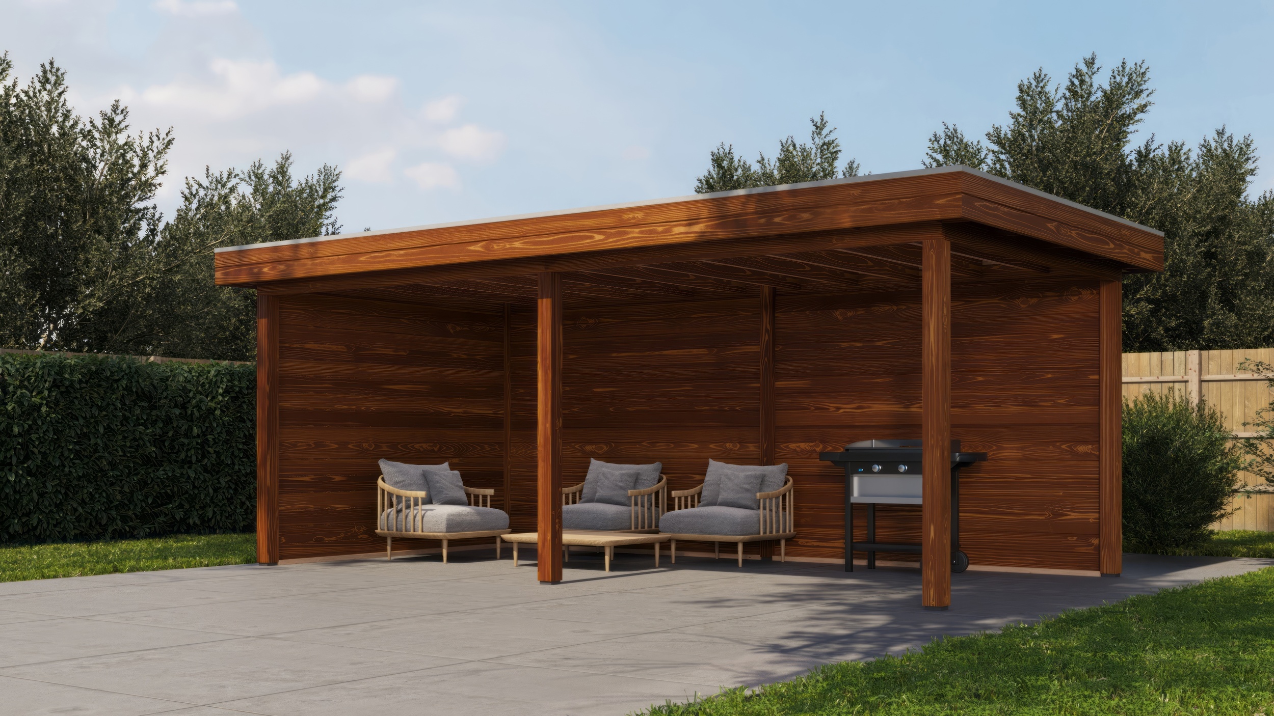 Sometimes you know exactly what you need: a garden building that fits seamlessly into your outdoor space. With the Lugarde Select Gazebo collection, you can create a stylish and comfortable area that perfectly complements your home or garden. Thanks to the flat roof and fixed walls at the back and side, you are well protected from rain, wind and sun.
