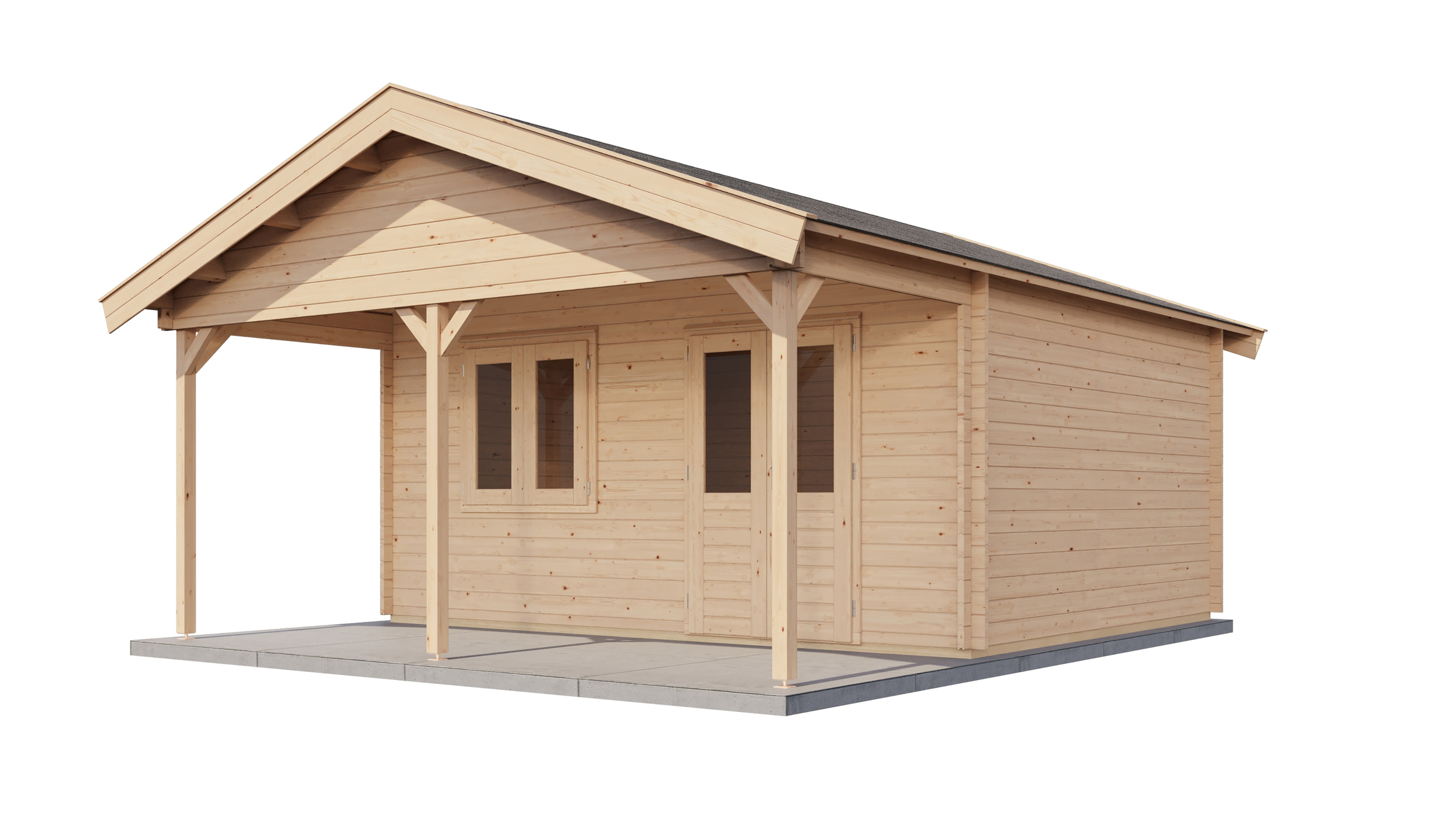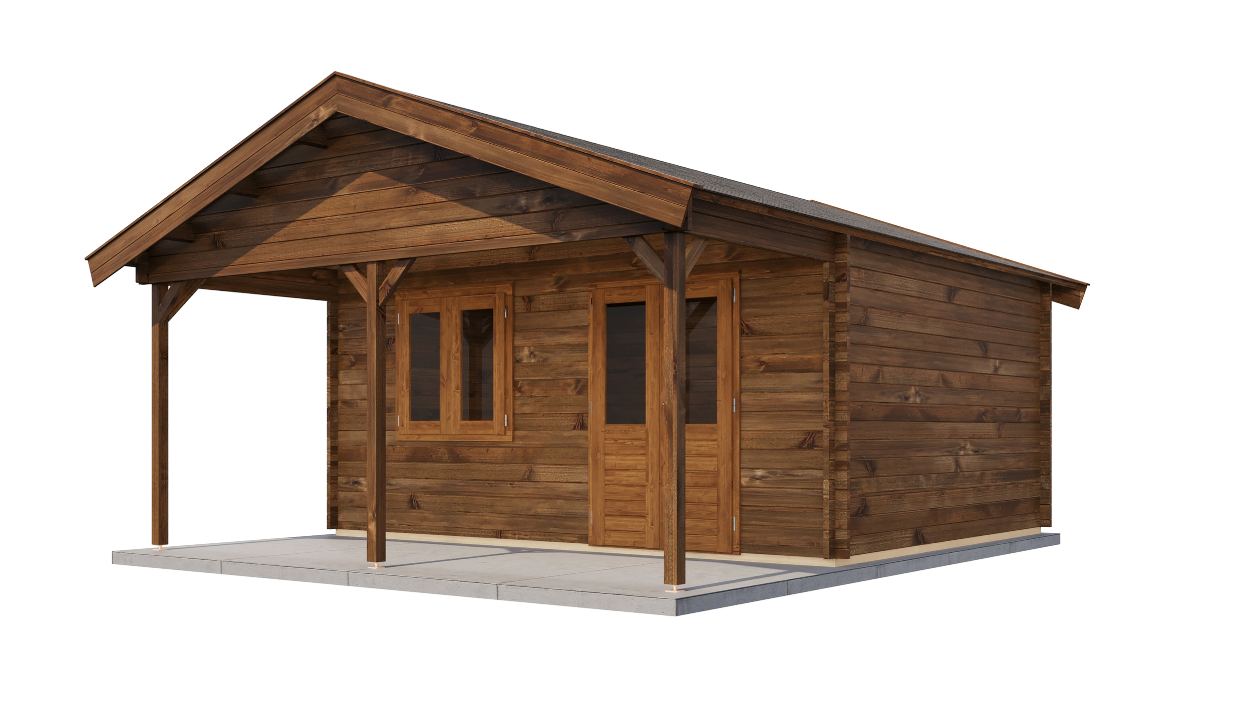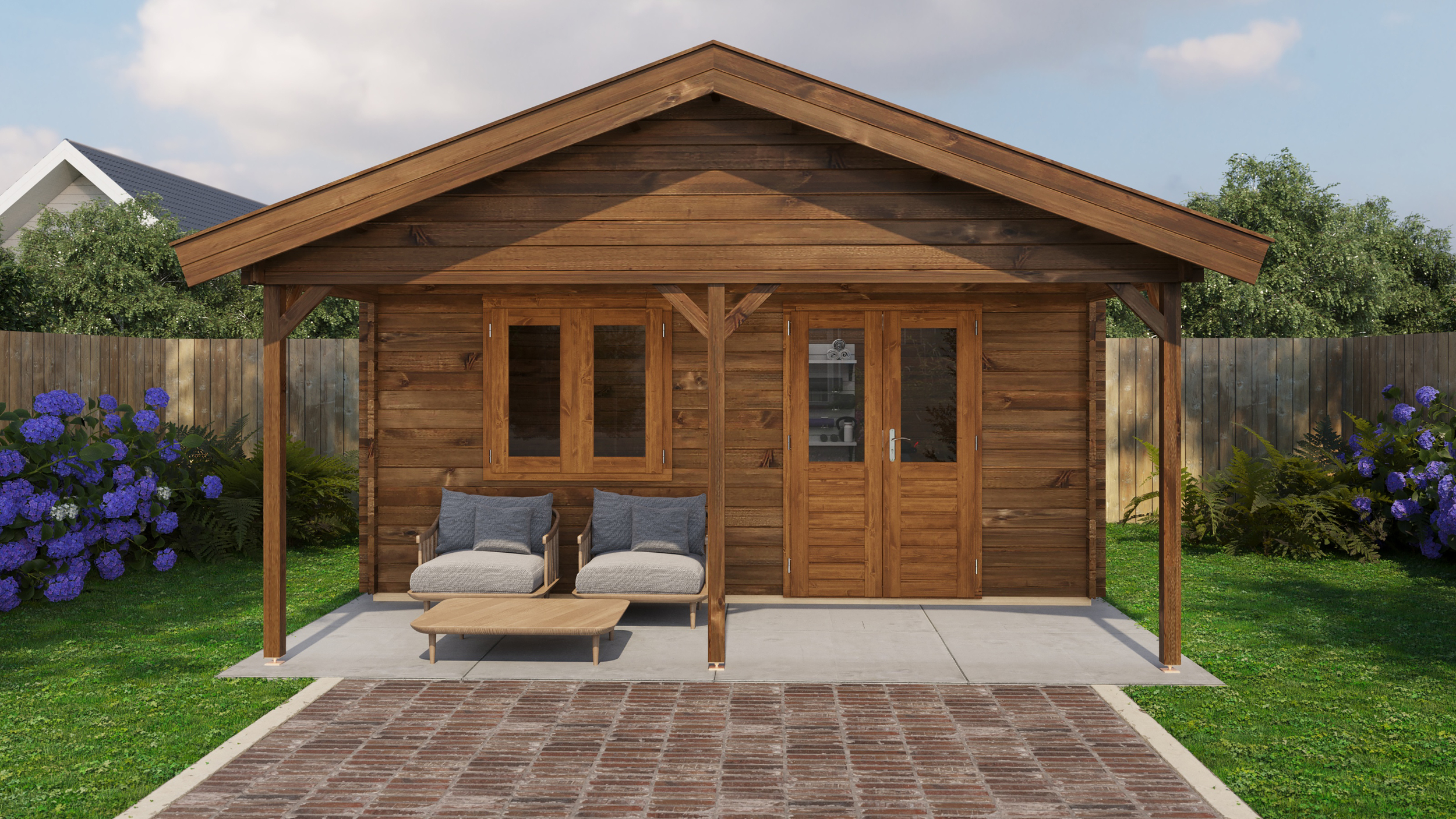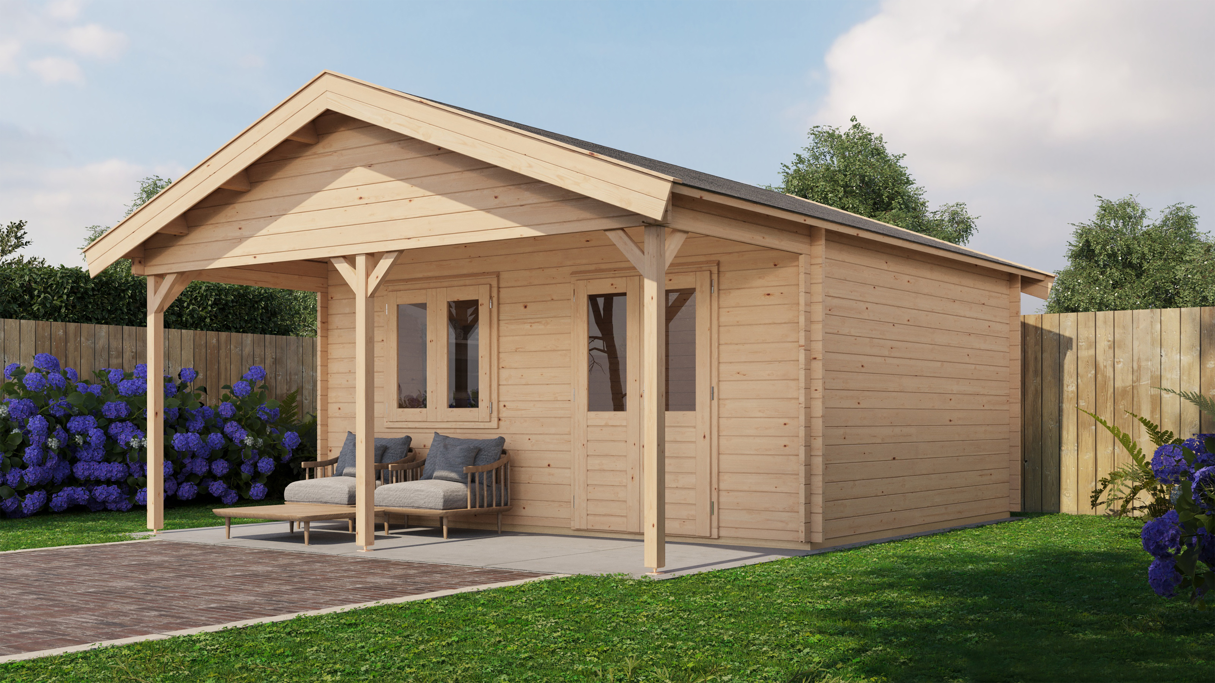 Classic Log Cabin with Front Canopy - Apex Roof - 44mm thick walls