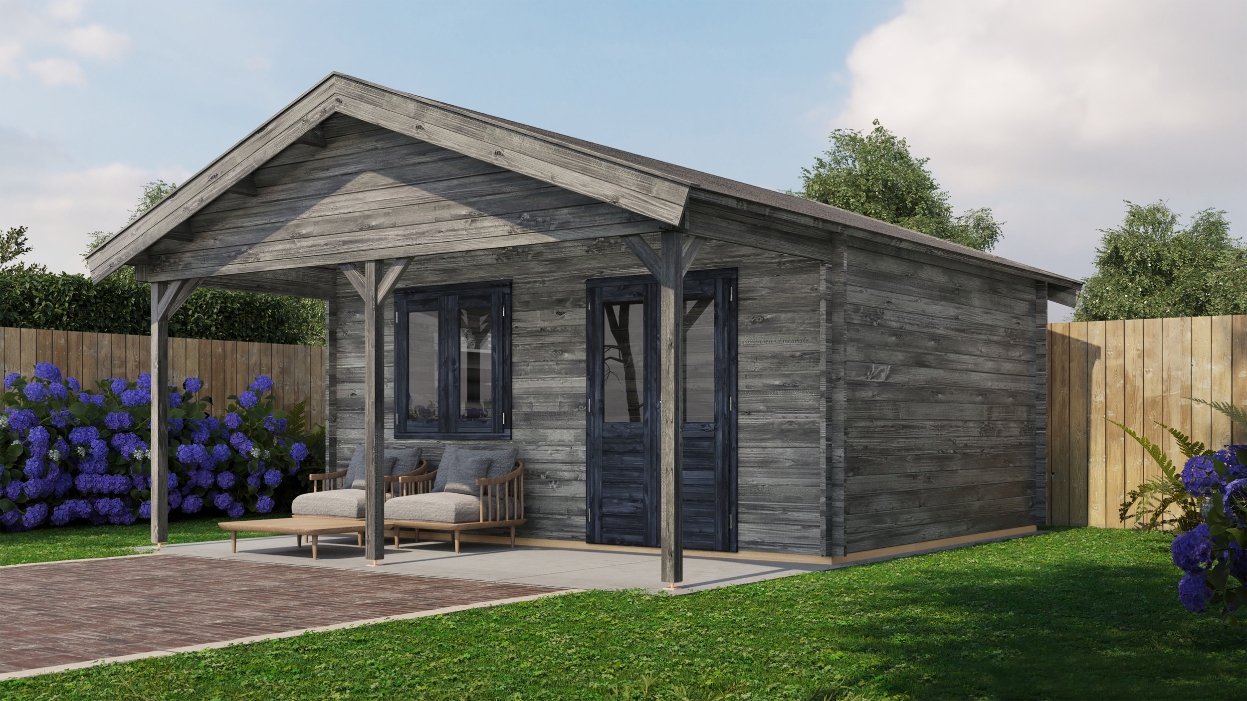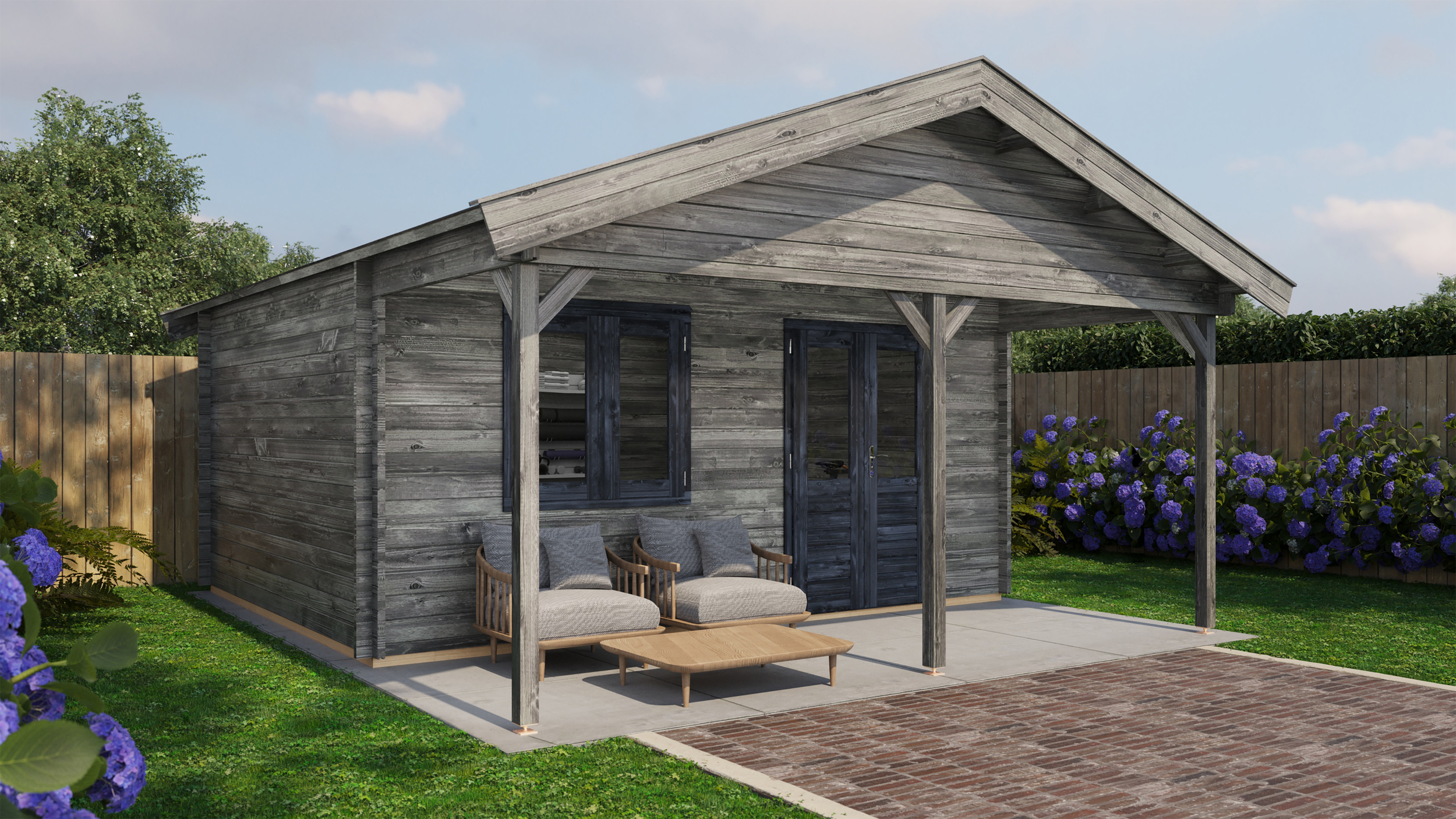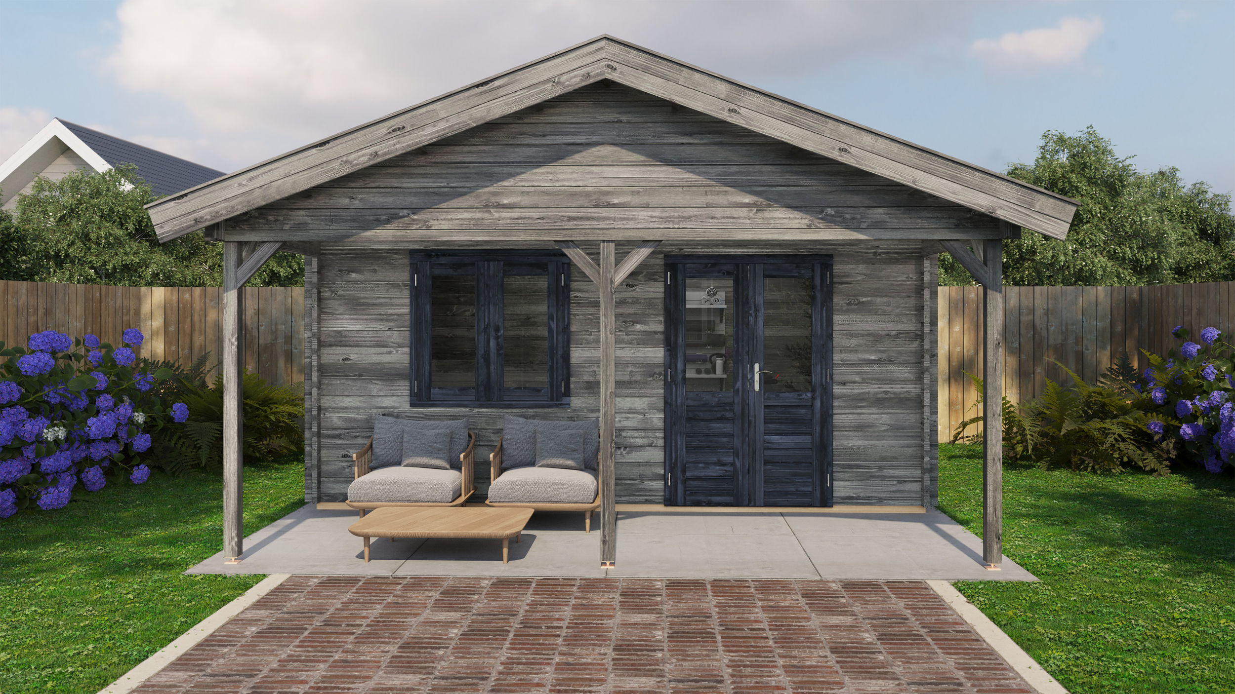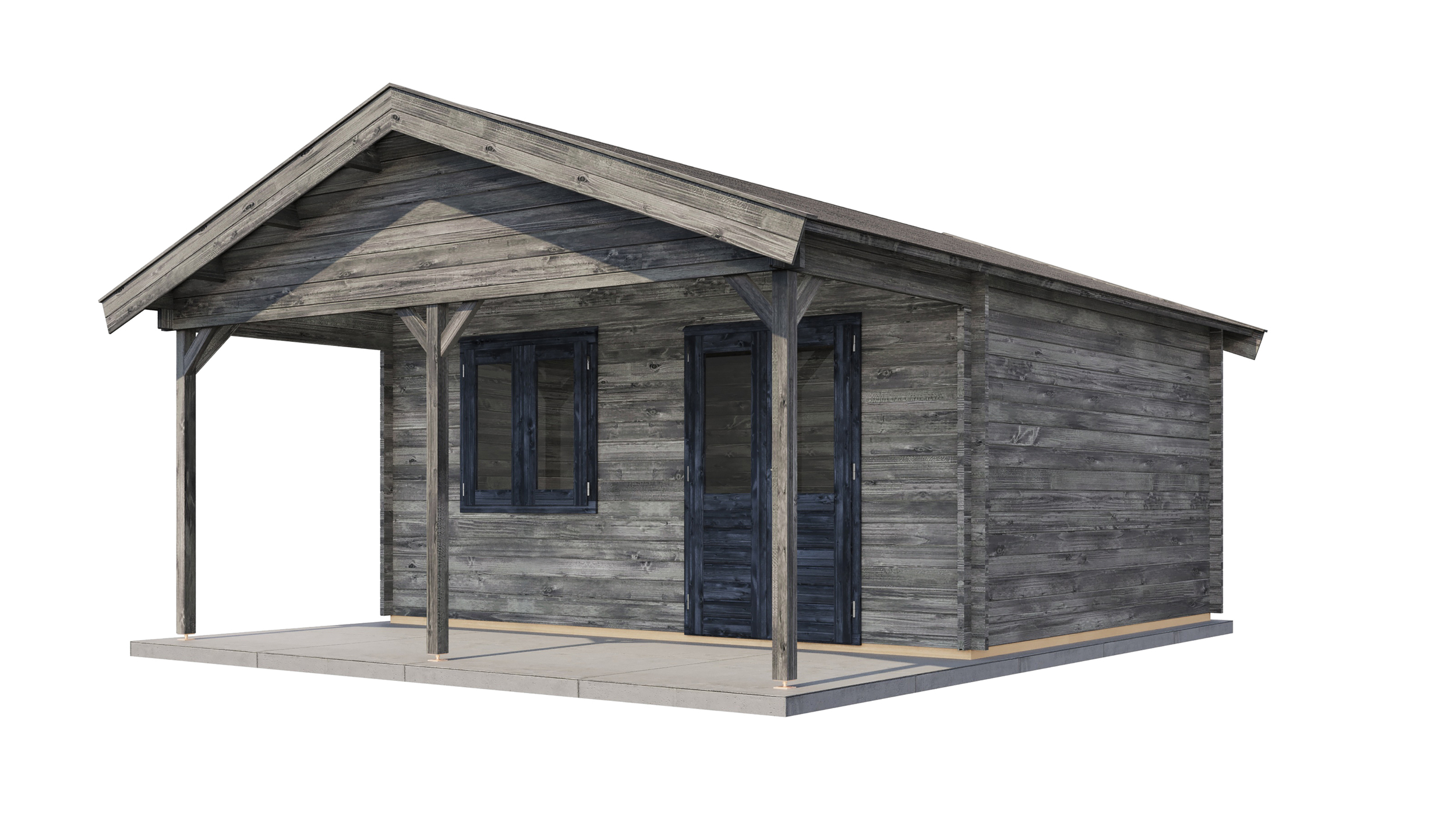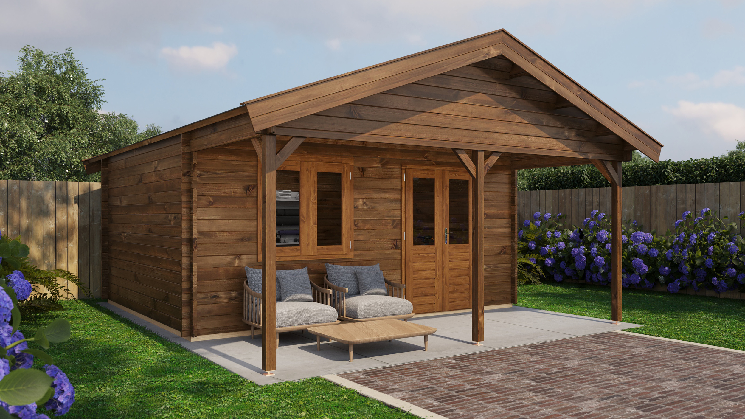 Classic Log Cabin with Front Canopy - Apex Roof - 44mm thick walls