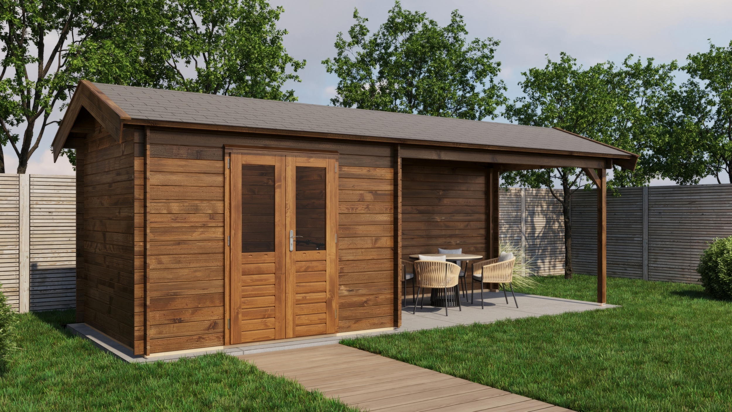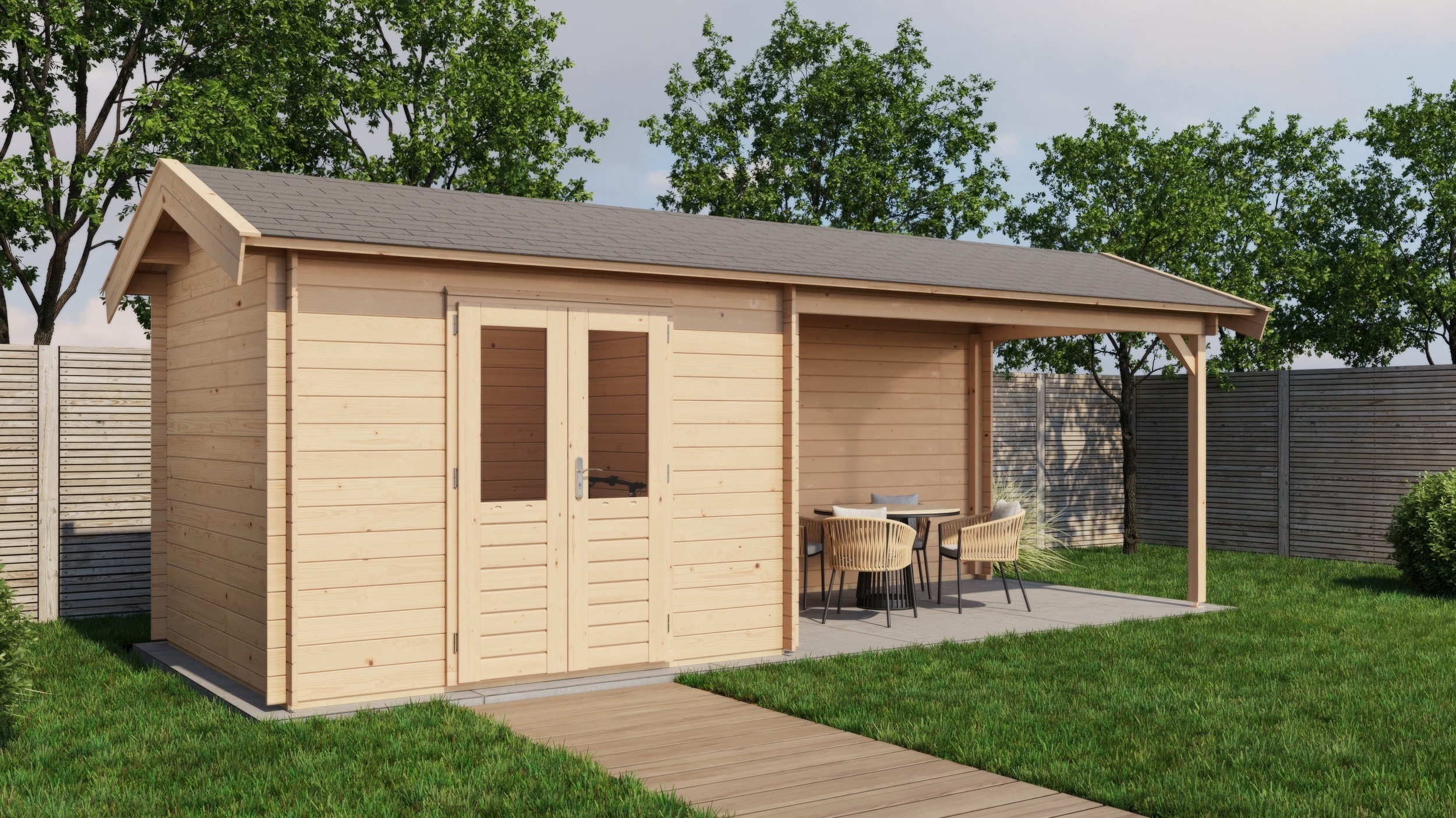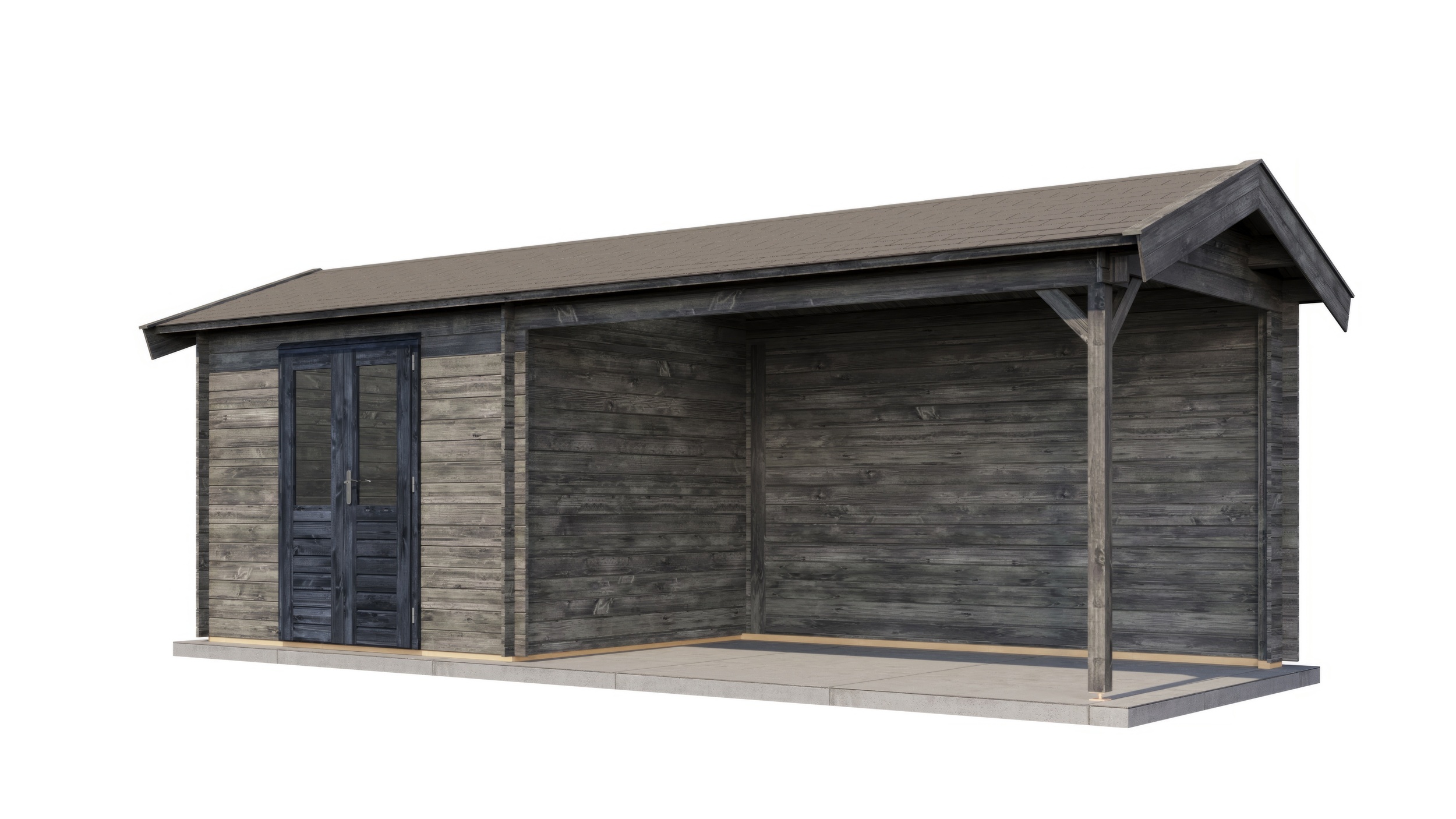 Classic Log Cabin with Veranda - Apex Roof - 28mm thick walls