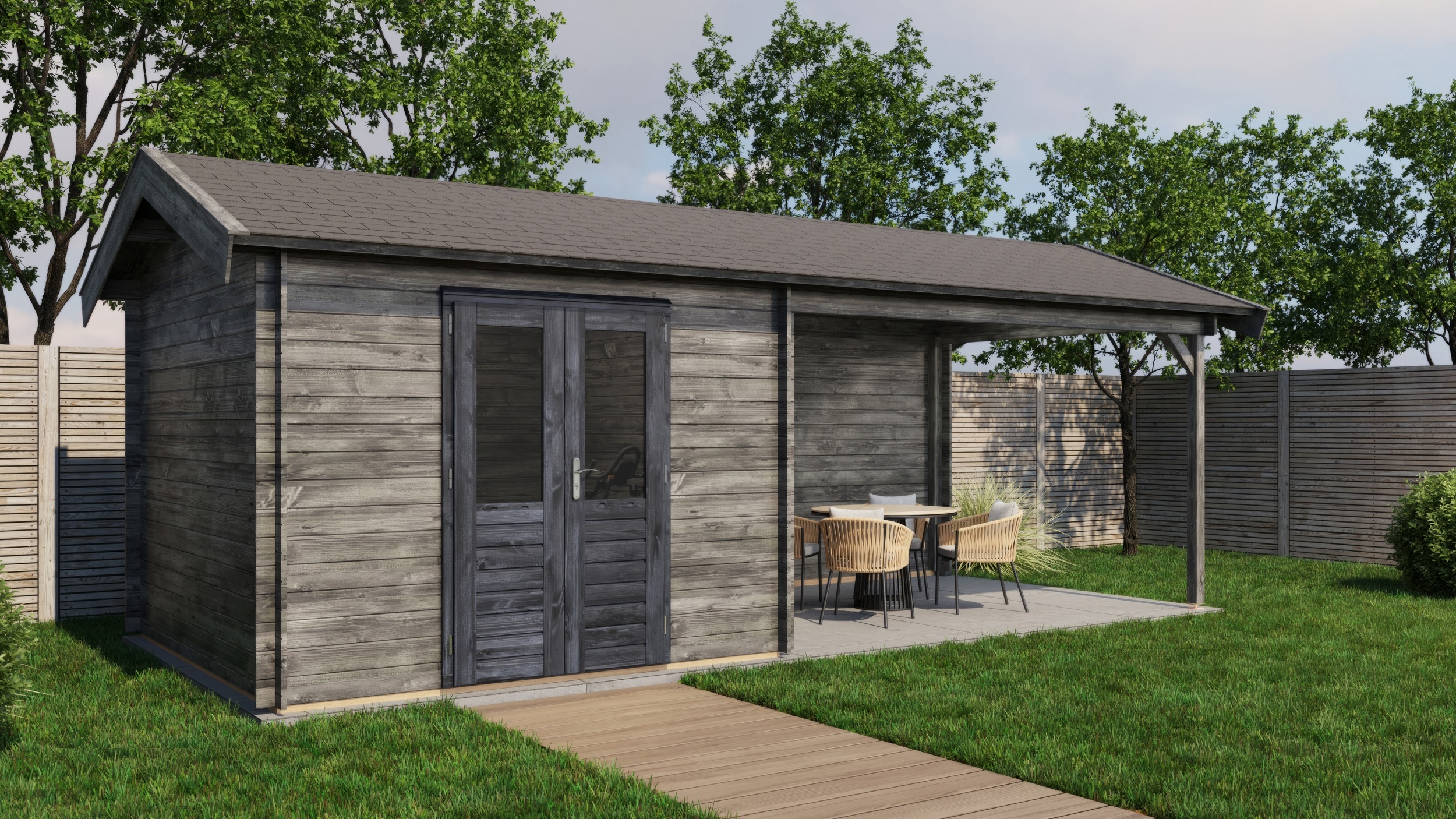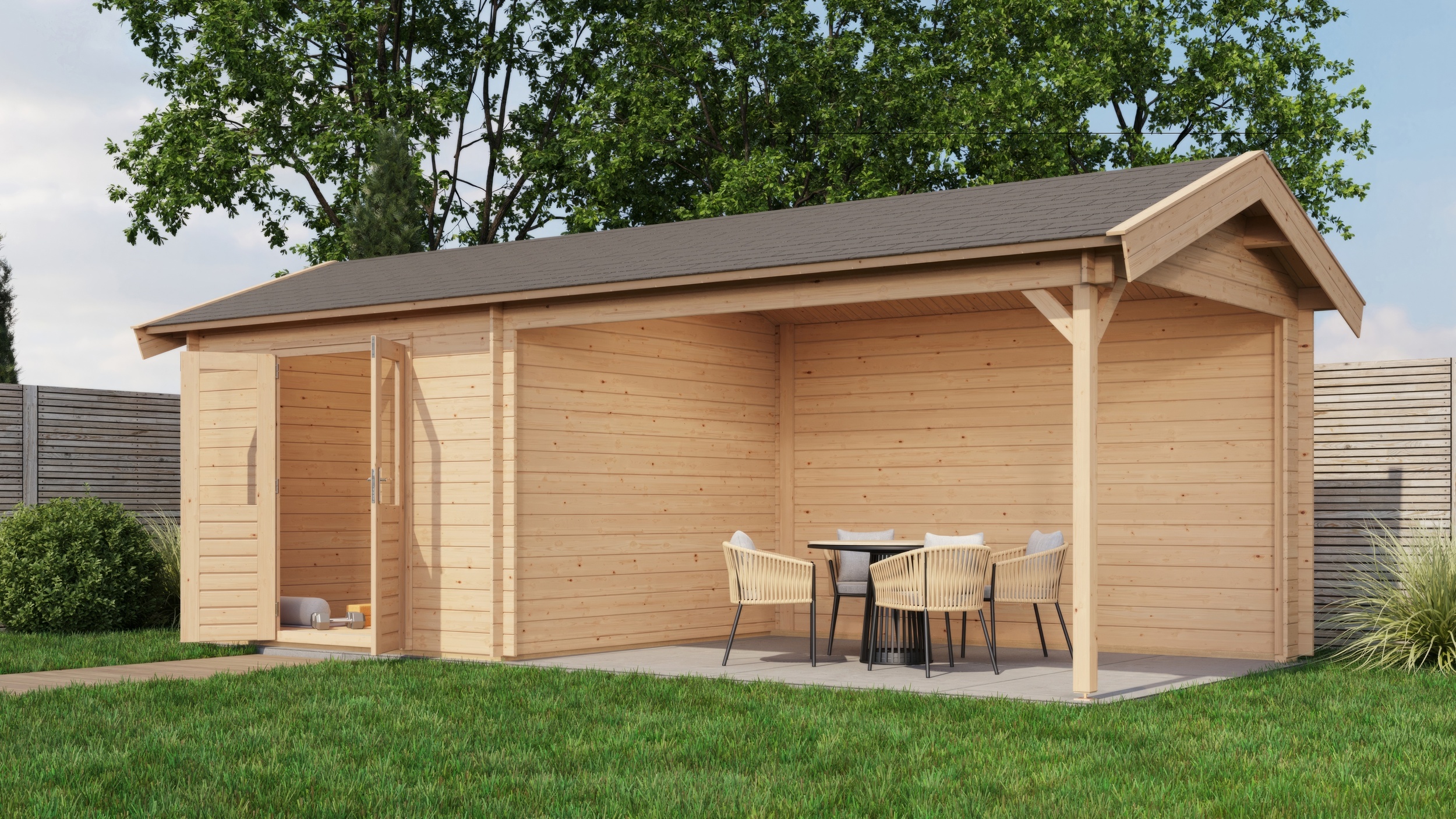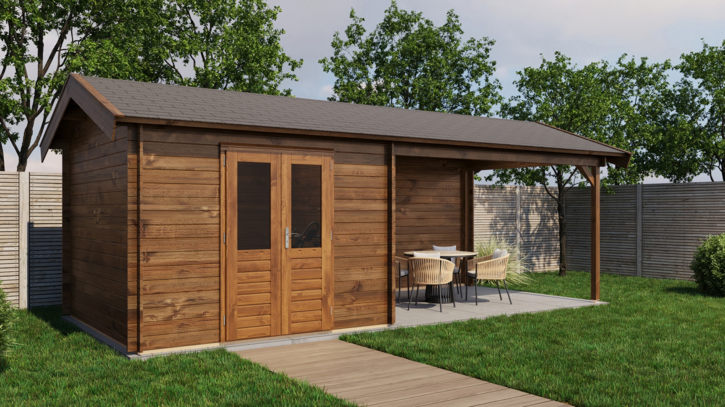 Classic Log Cabin with Veranda - Apex Roof - 28mm thick walls
