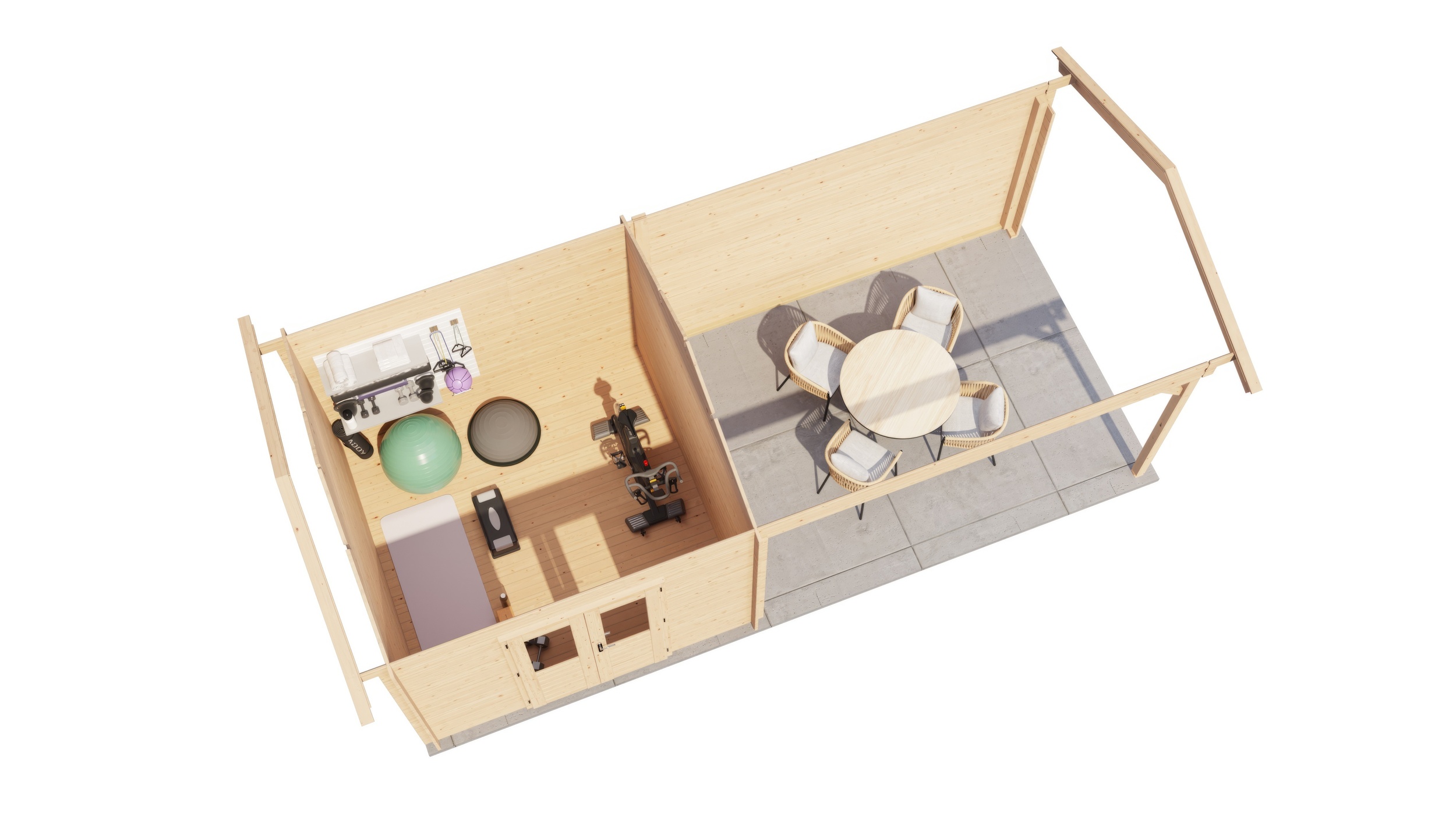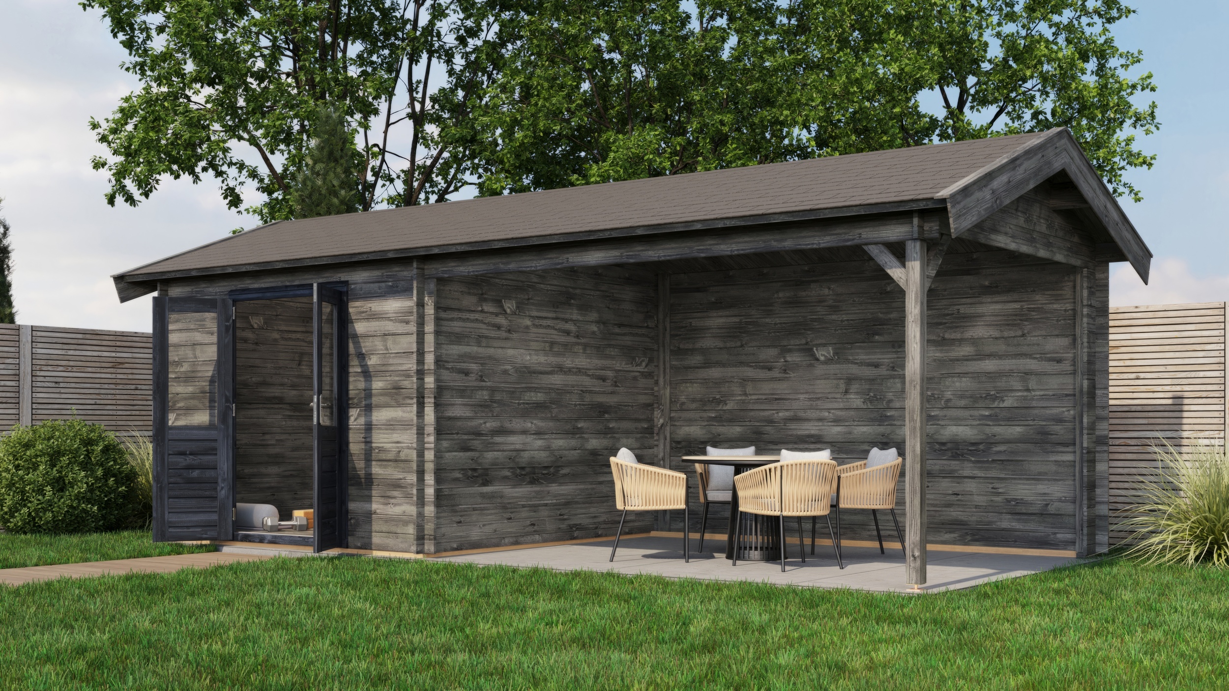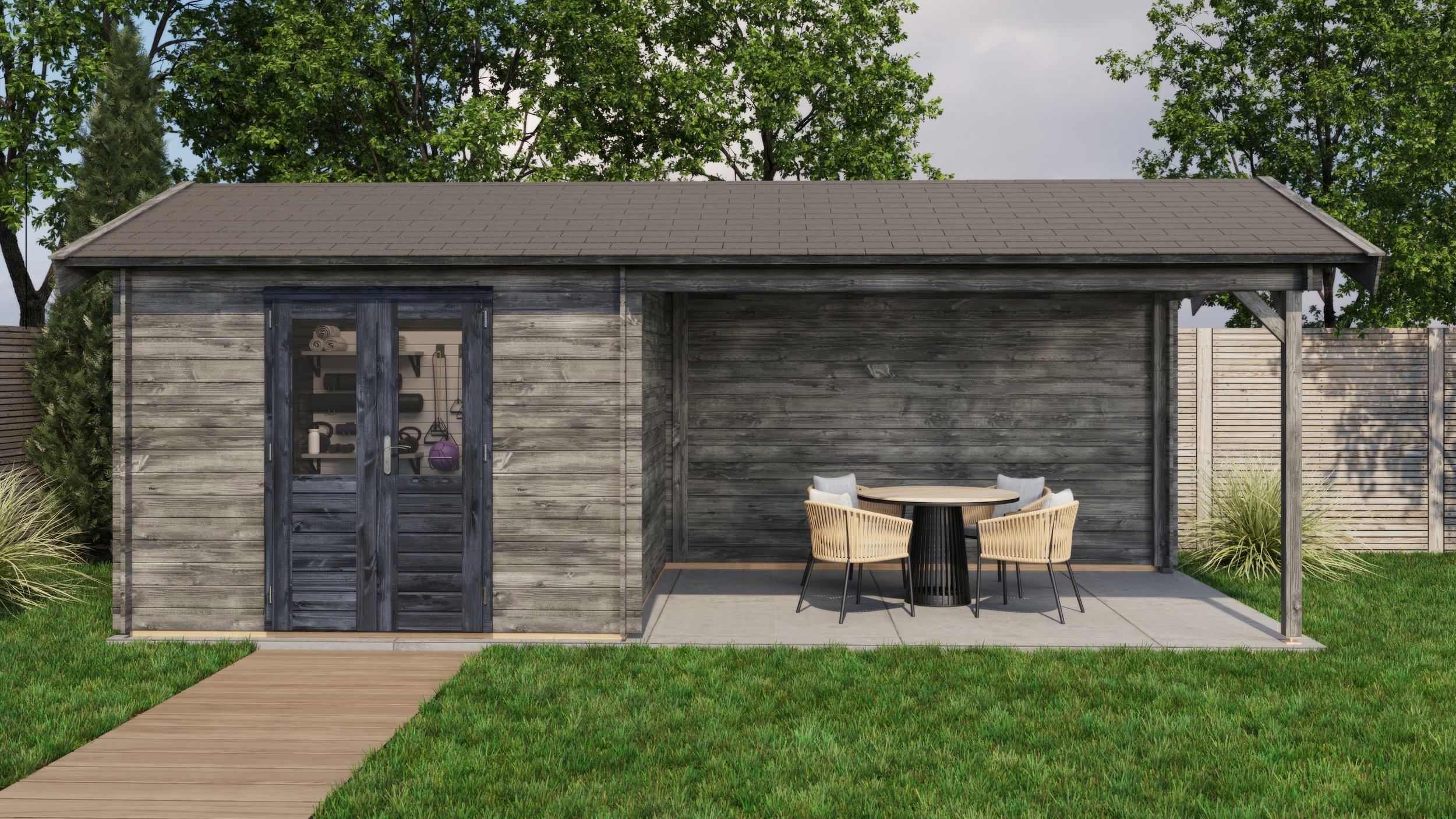 Classic Log Cabin with Veranda - Apex Roof - 28mm thick walls