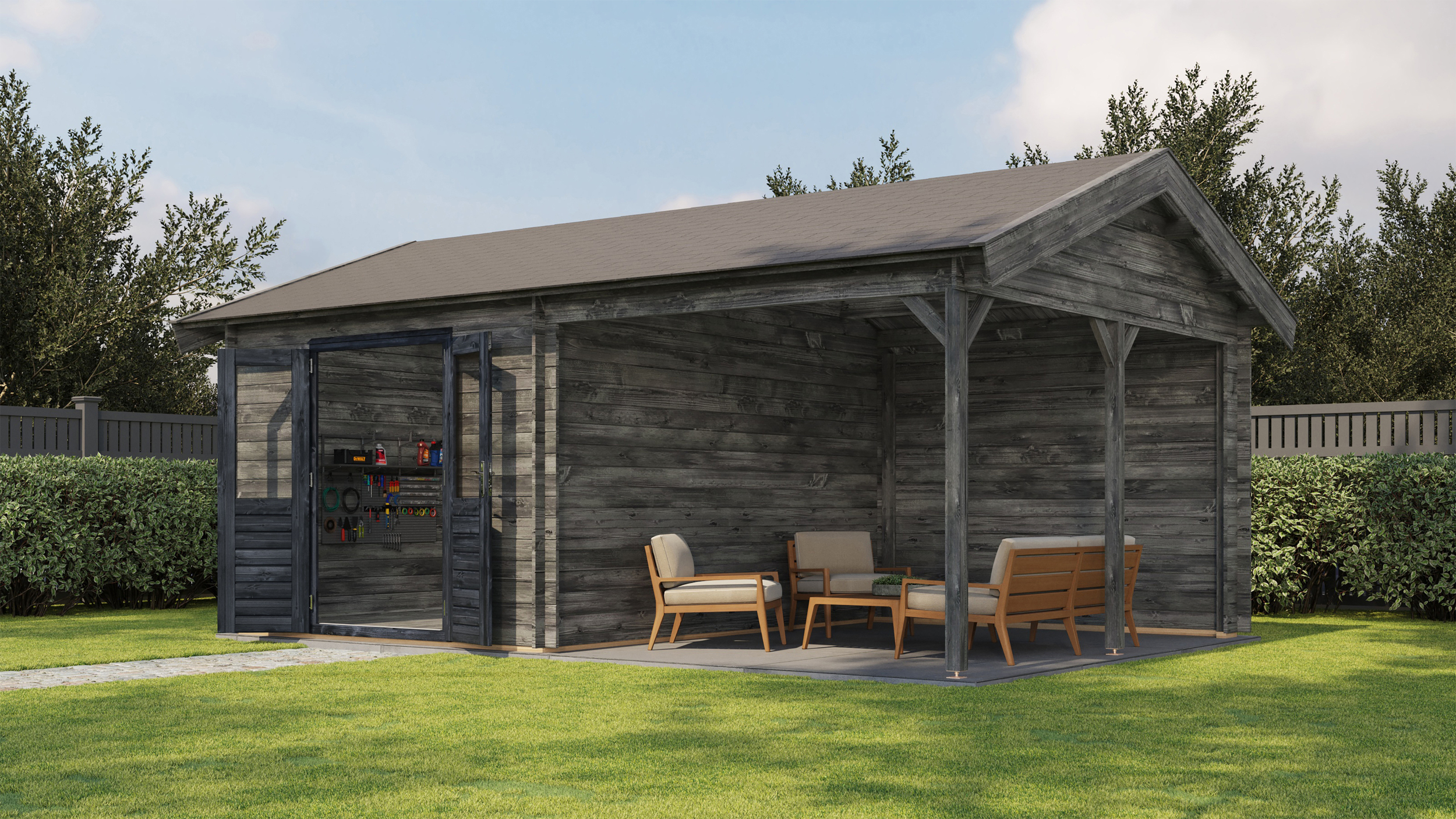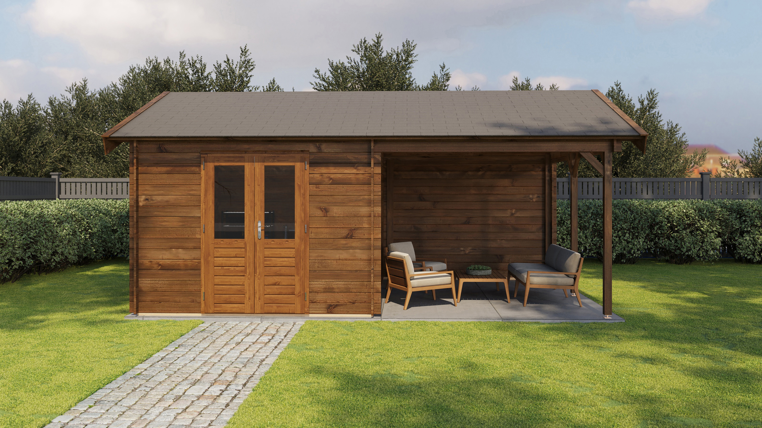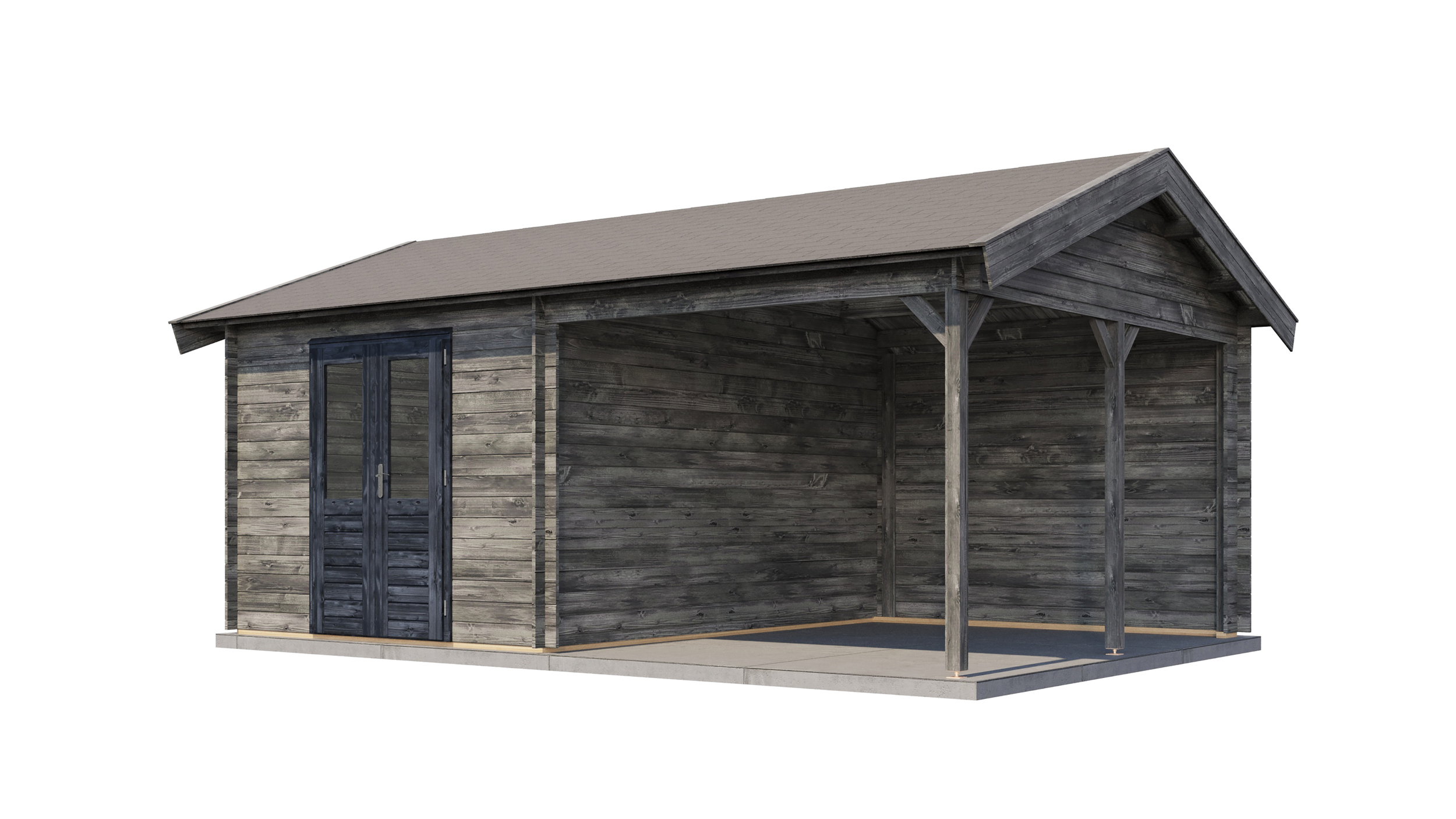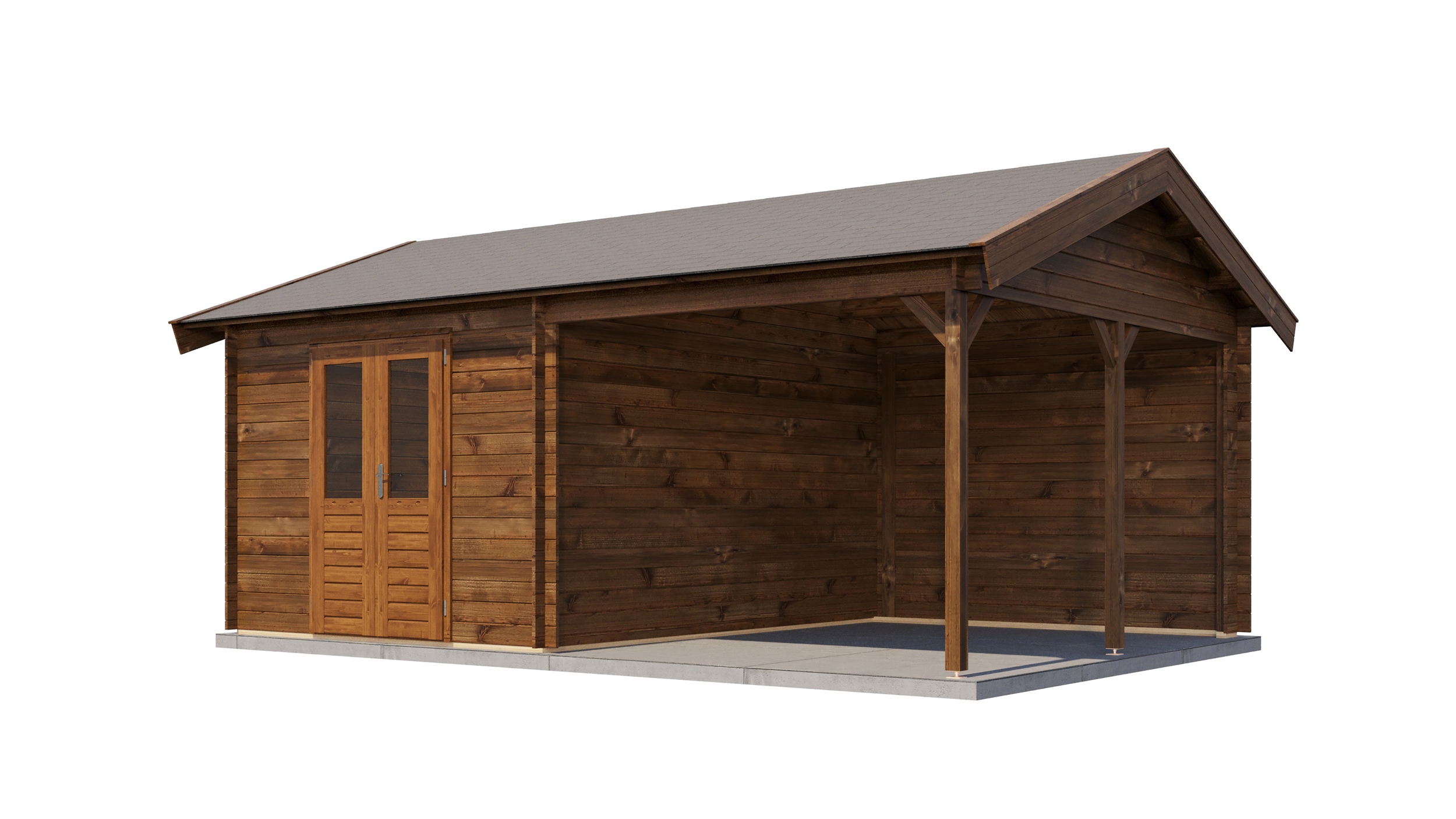 Classic Log Cabin with Veranda - Apex Roof - 28mm thick walls