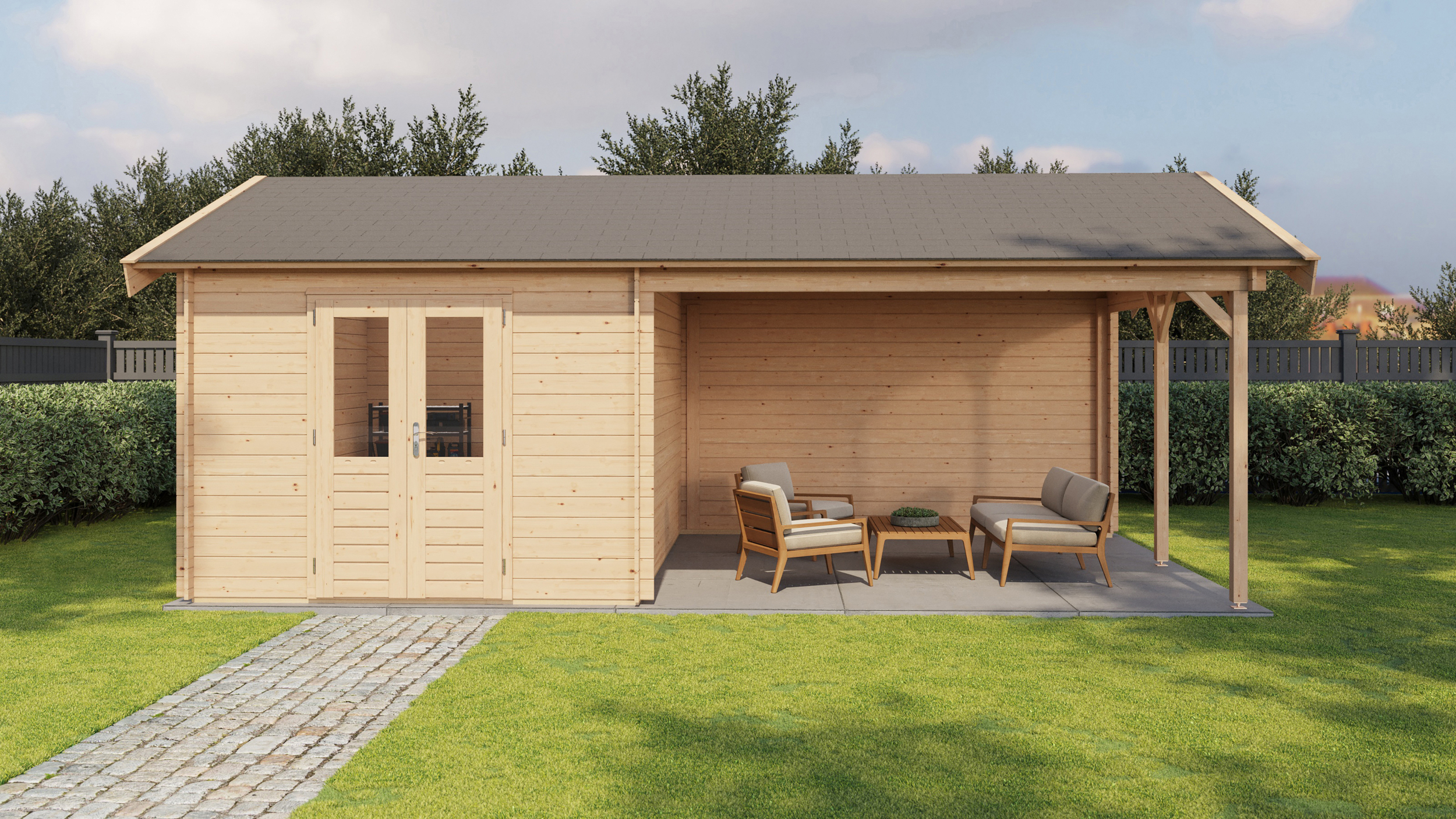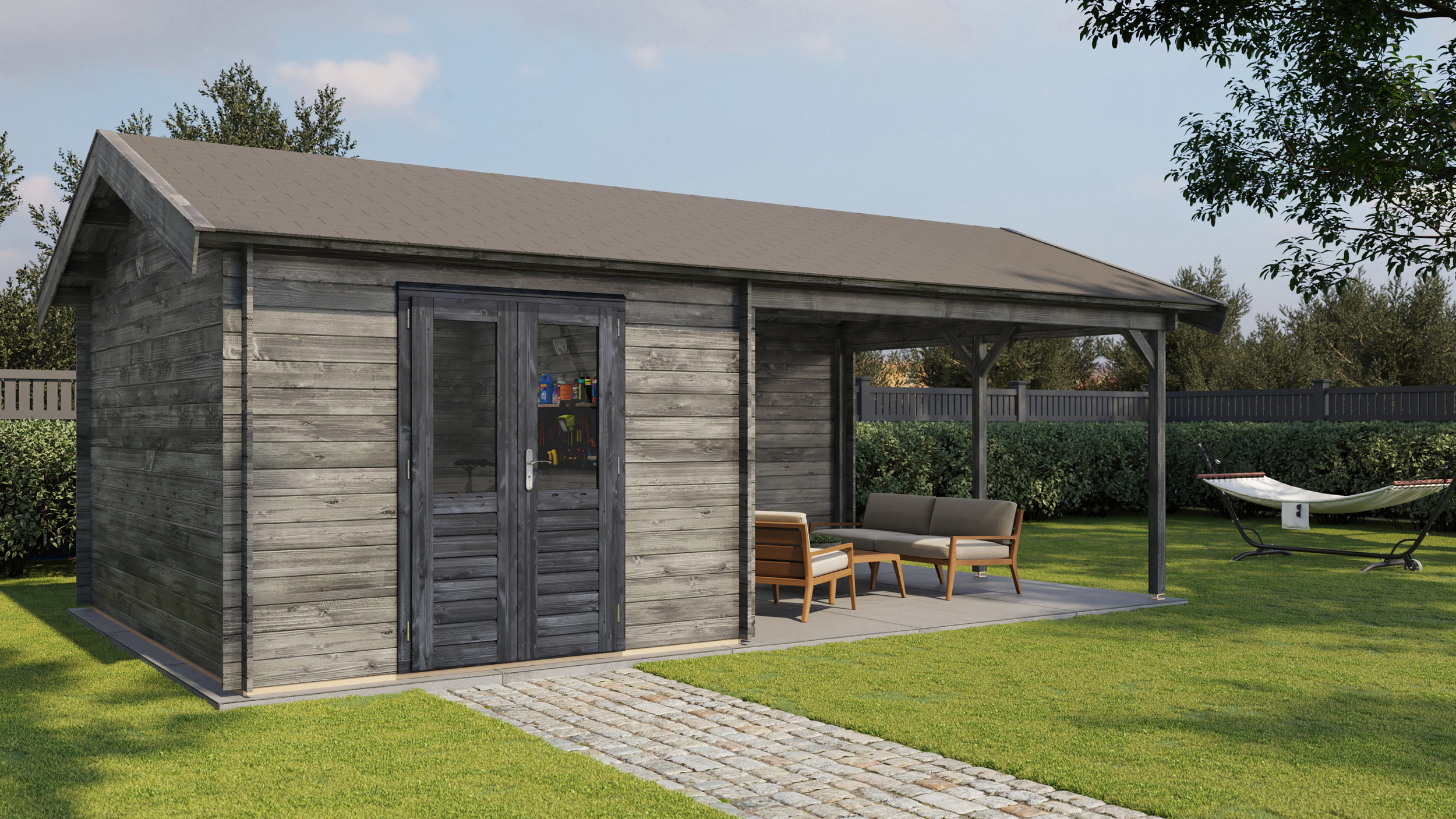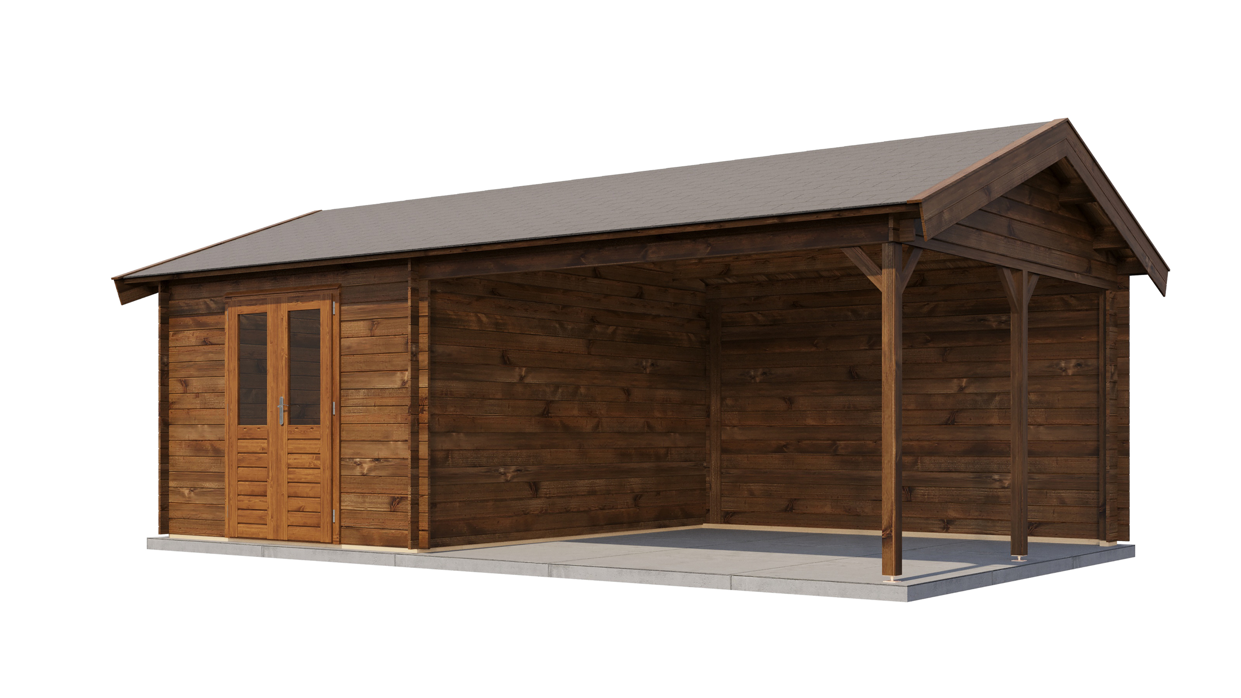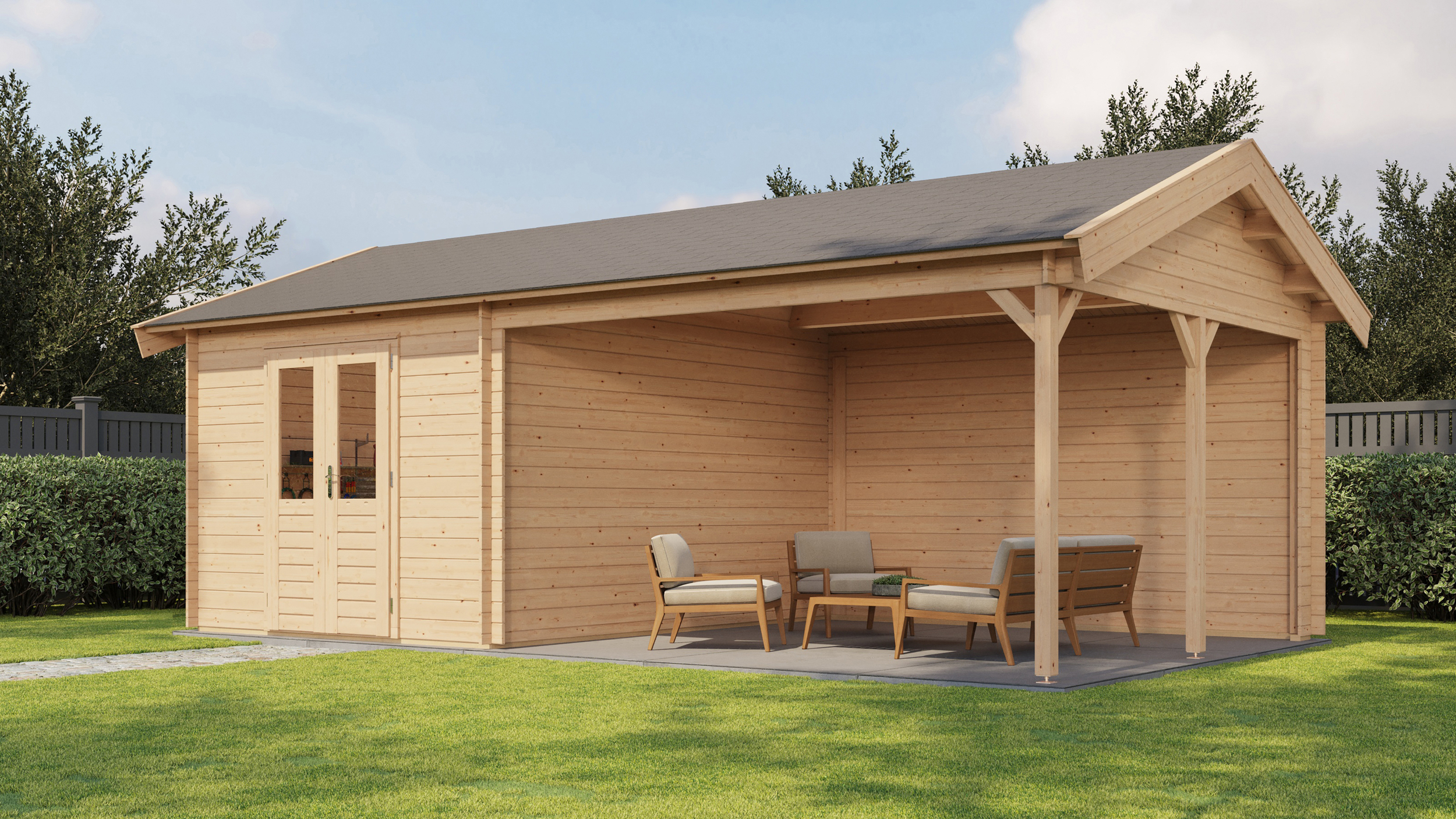 Classic Log Cabin with Veranda - Apex Roof - 28mm thick walls