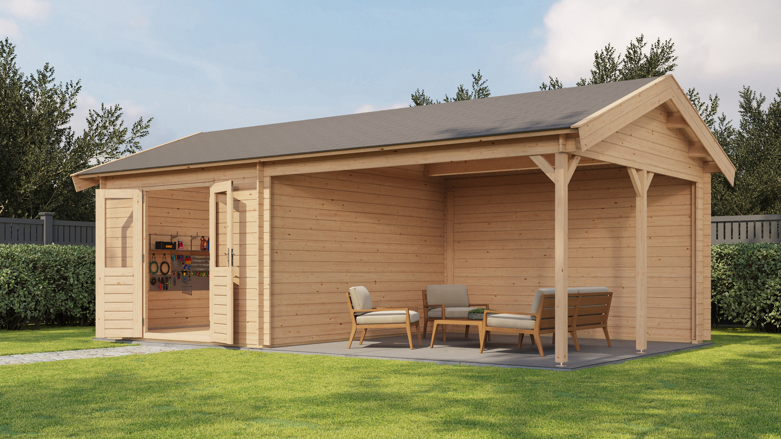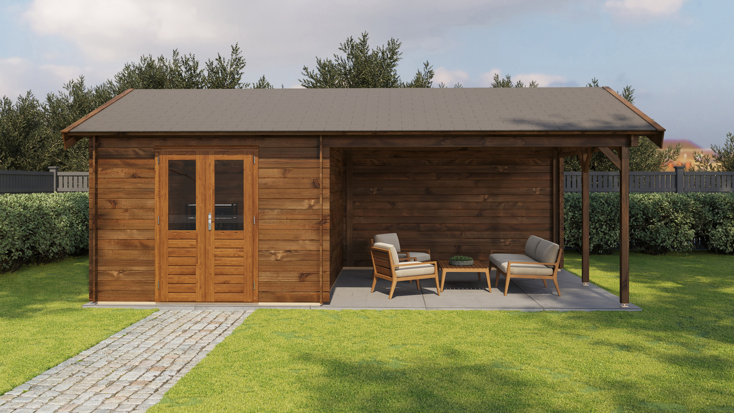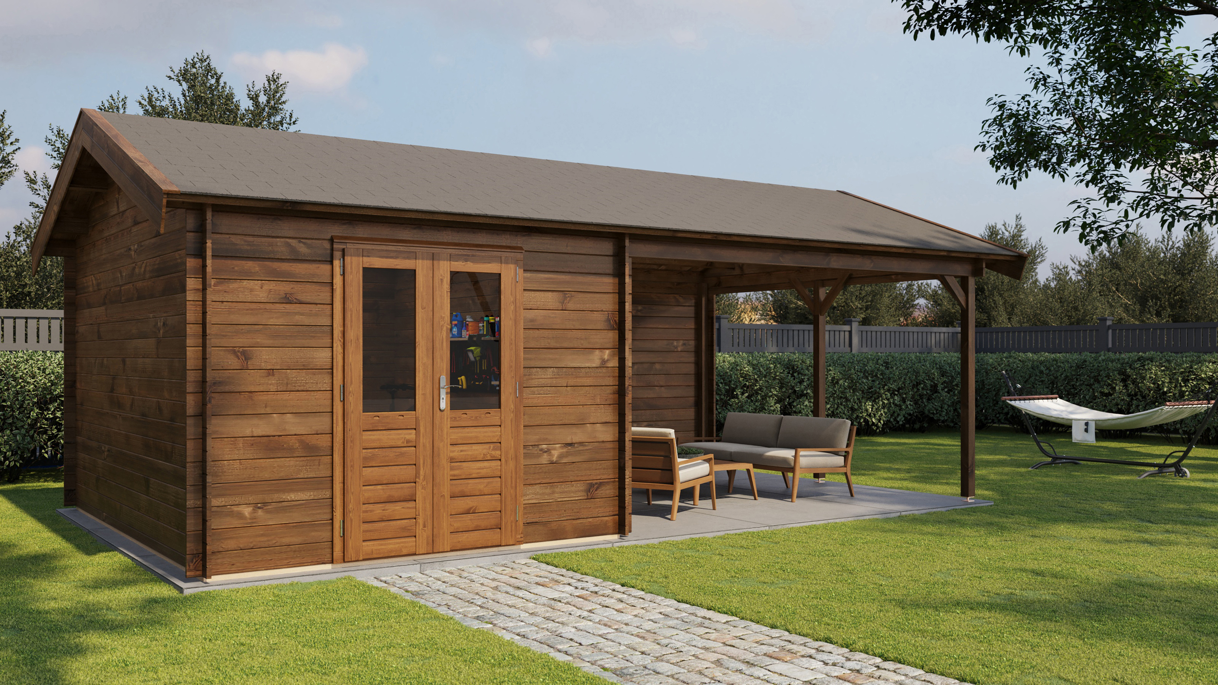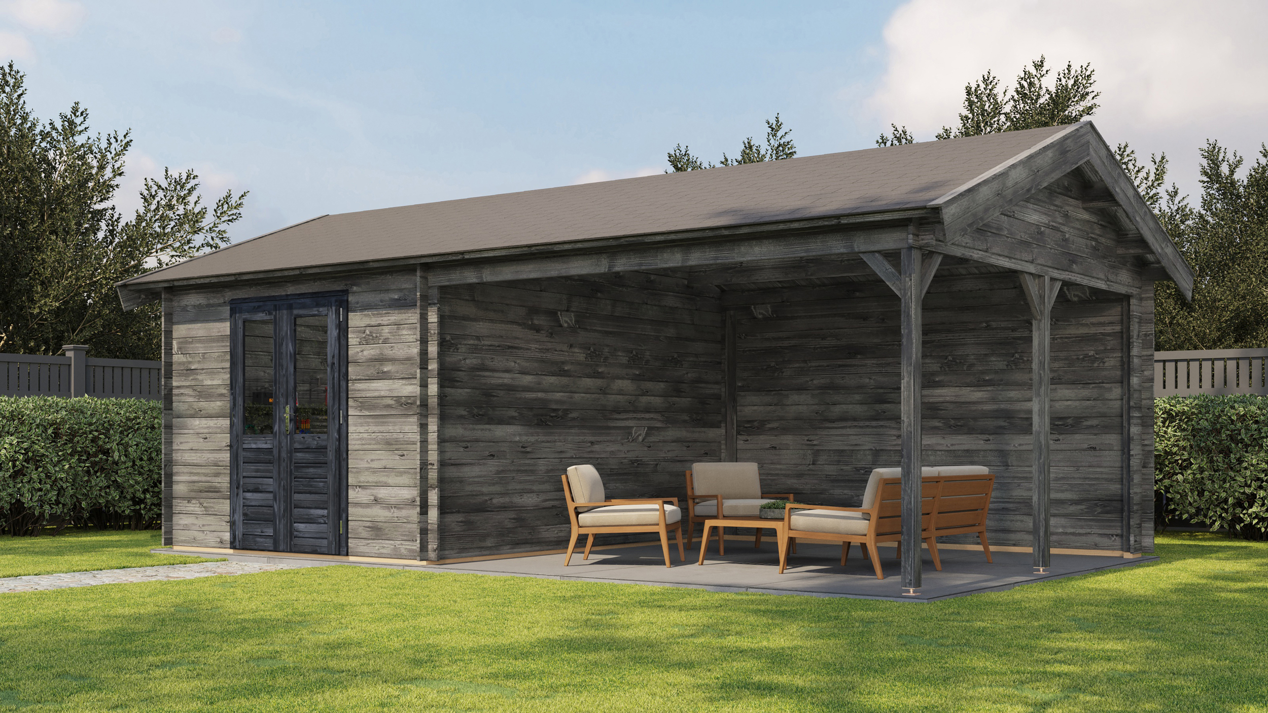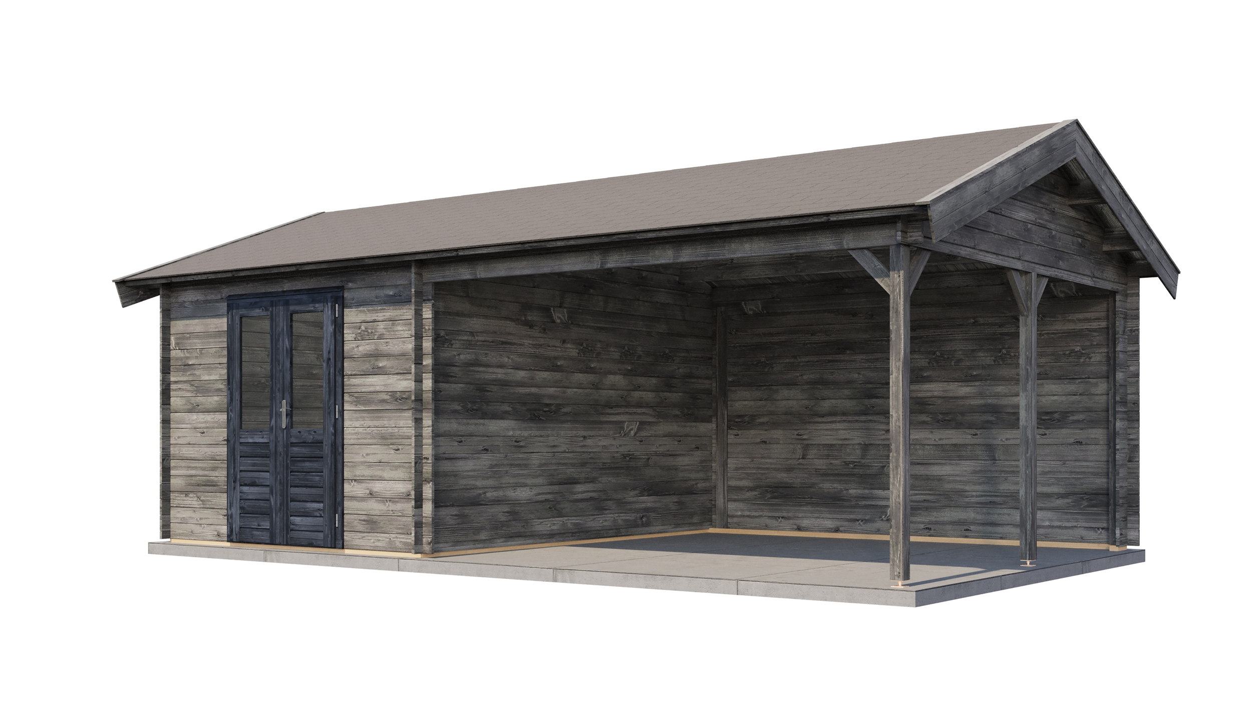 Classic Log Cabin with Veranda - Apex Roof - 28mm thick walls