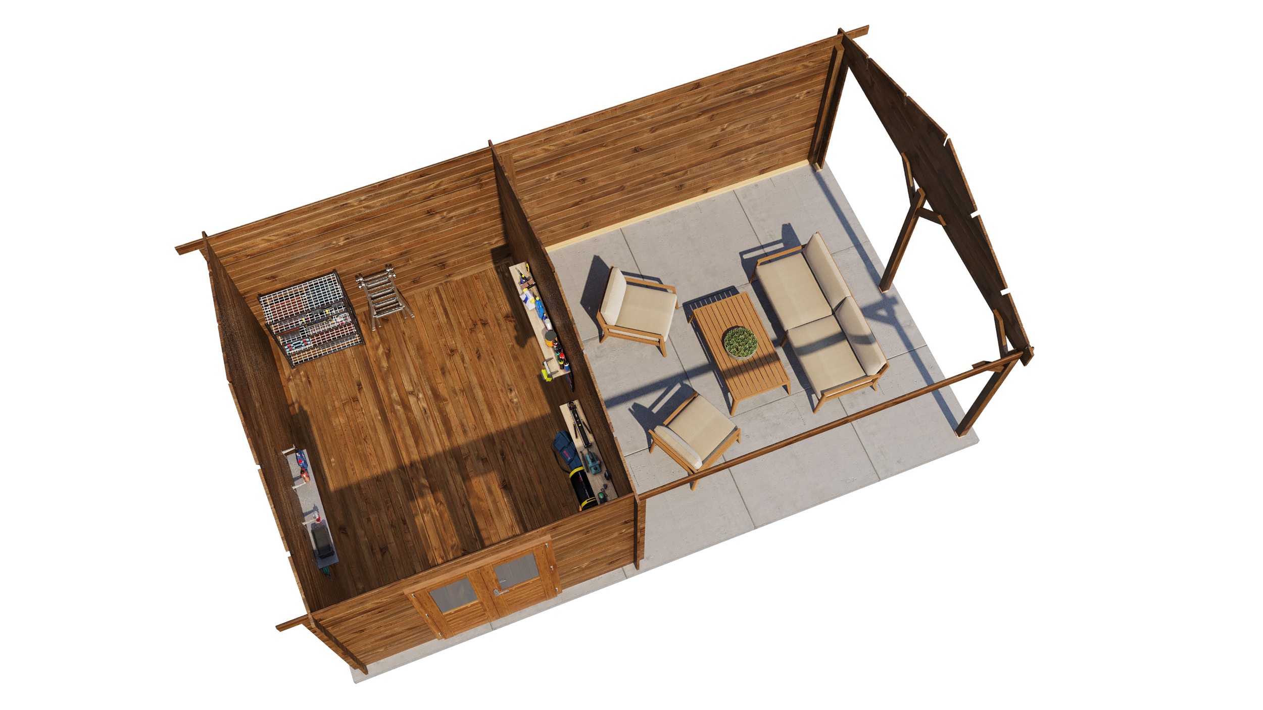 Choose to have no floor supplied or include 18mm floor boards, skirting & tanalised joists.