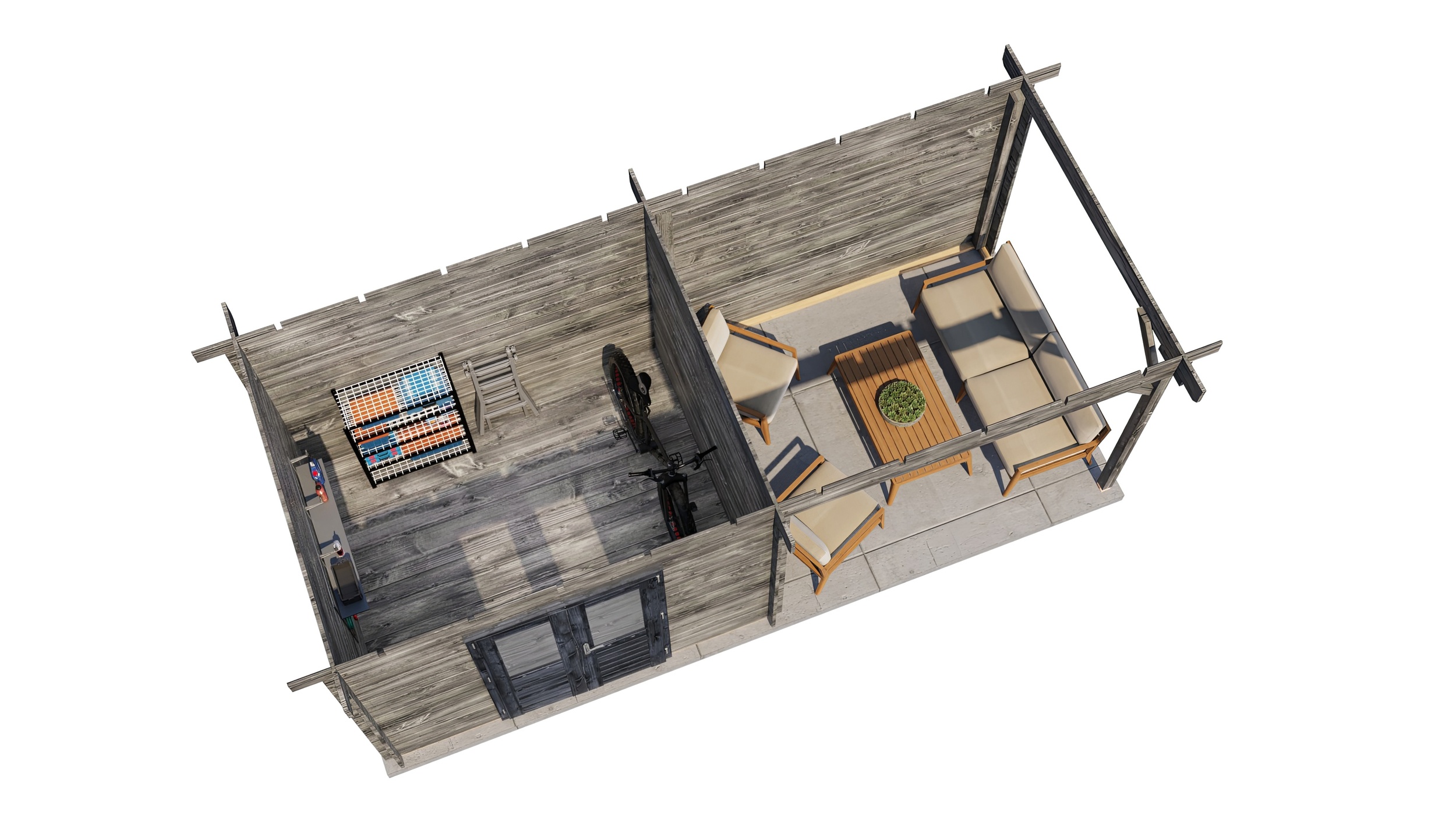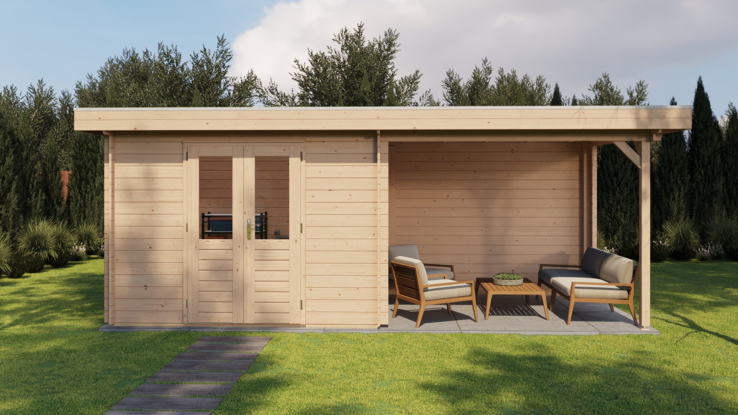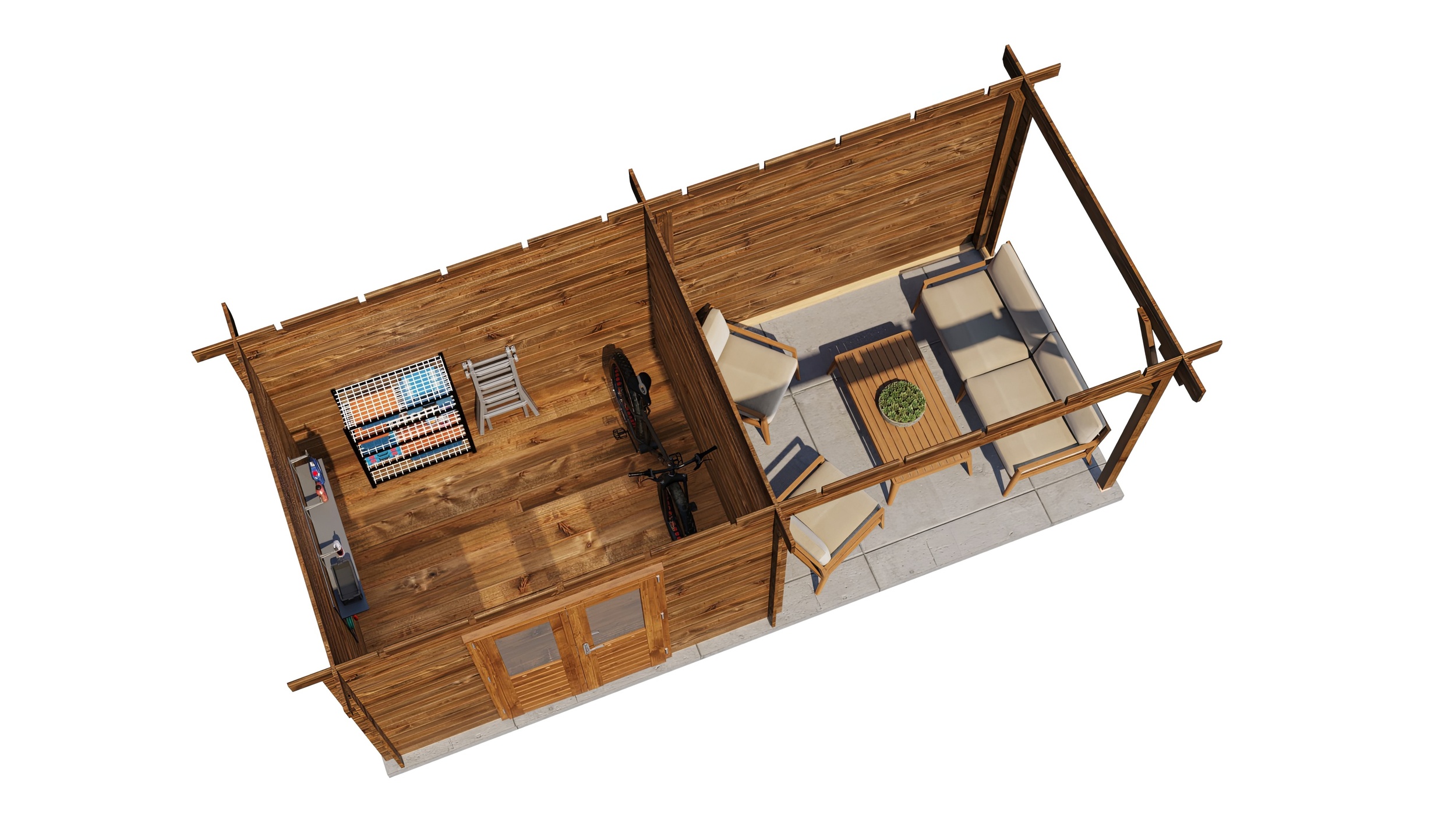 The cabin door will be hinged on the opposite side to your veranda side selection