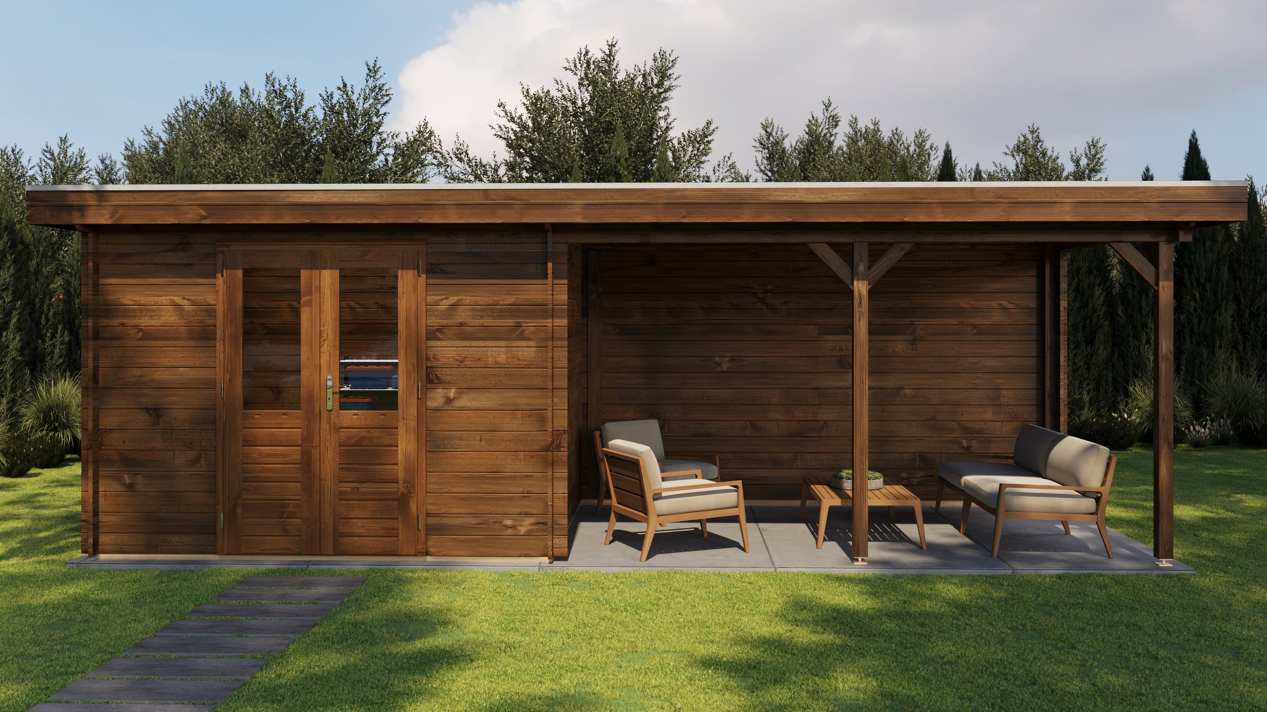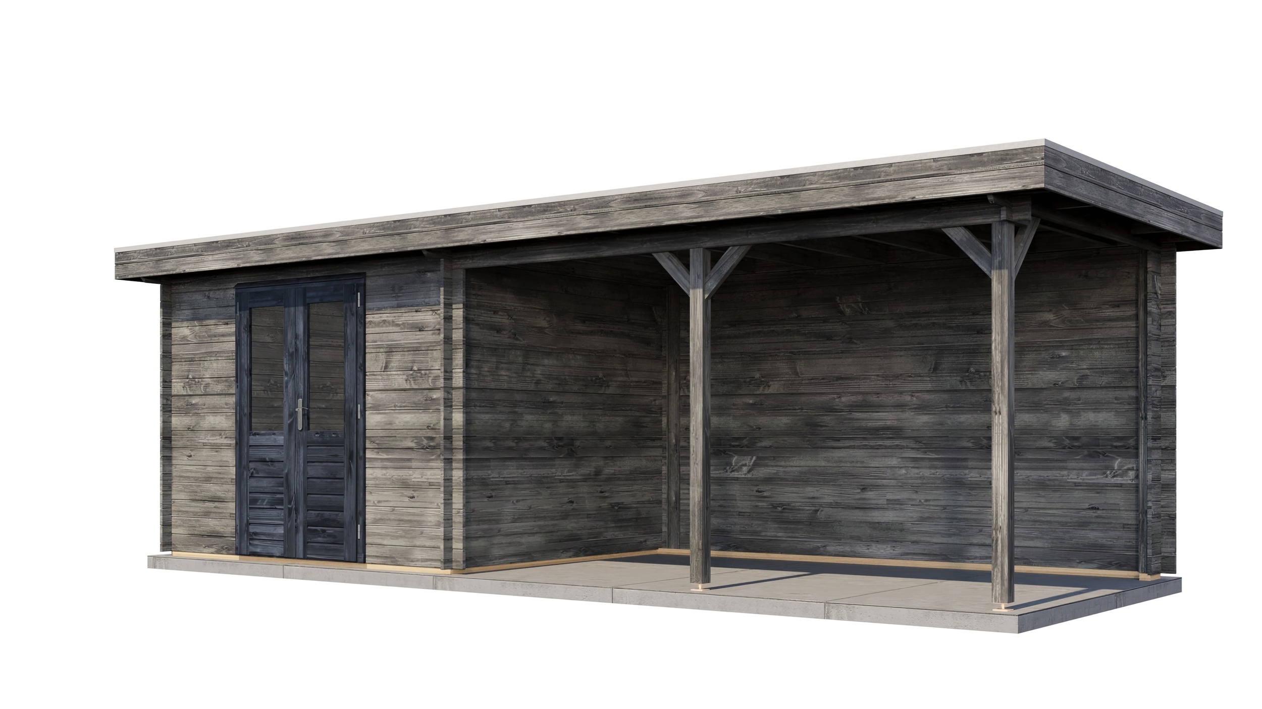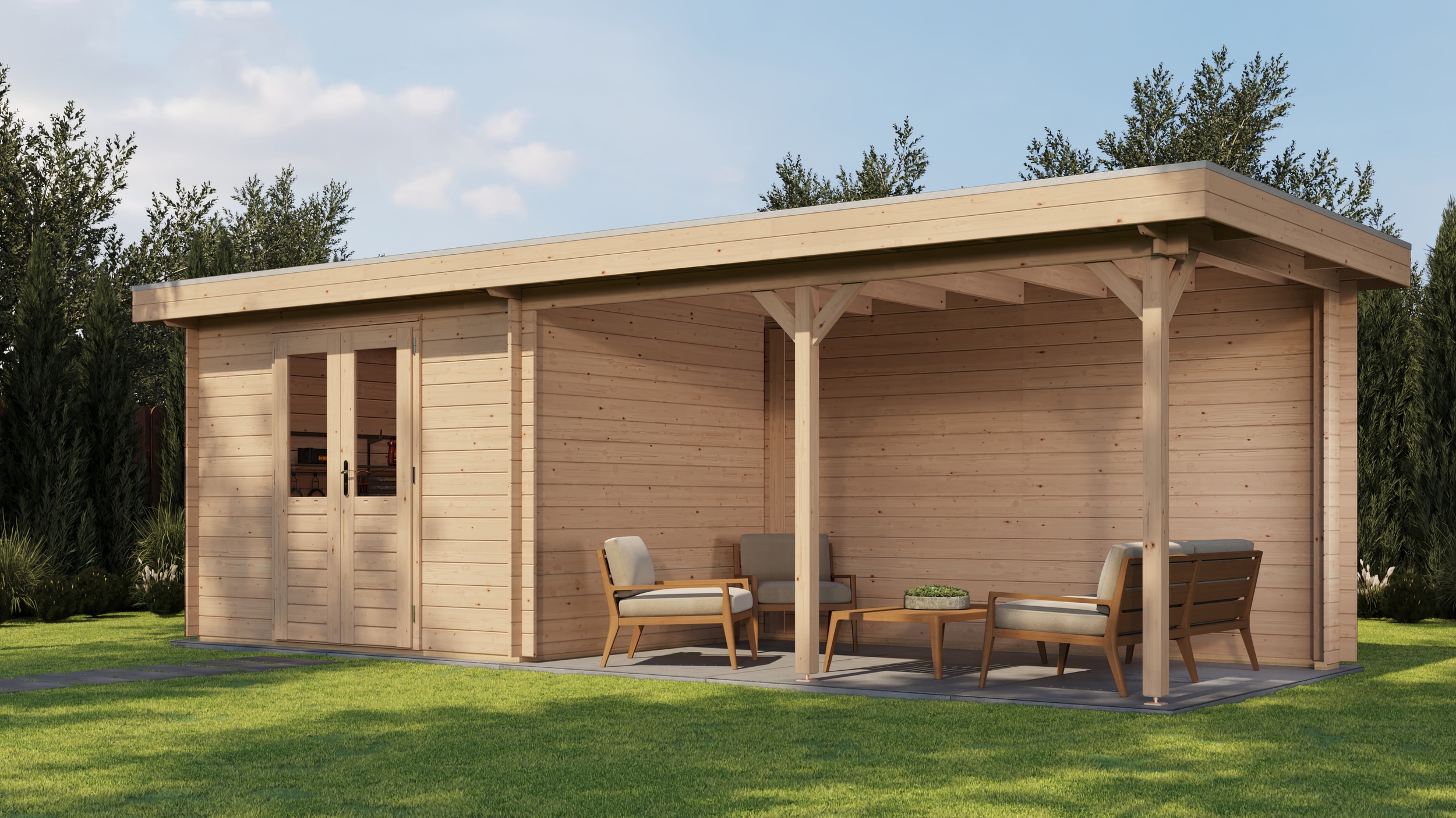 Classic Log Cabin with Veranda - Flat Roof - 28mm thick walls