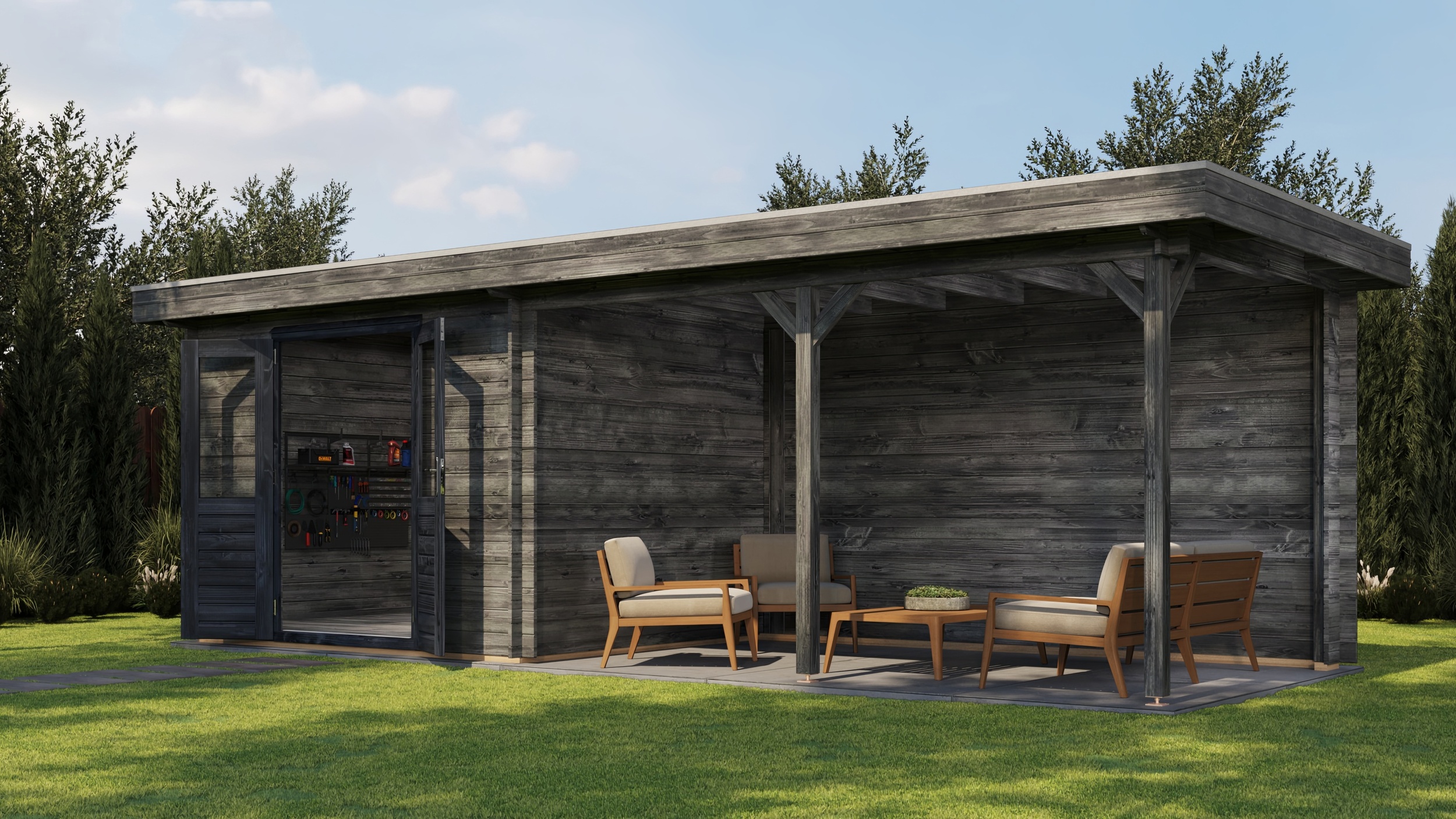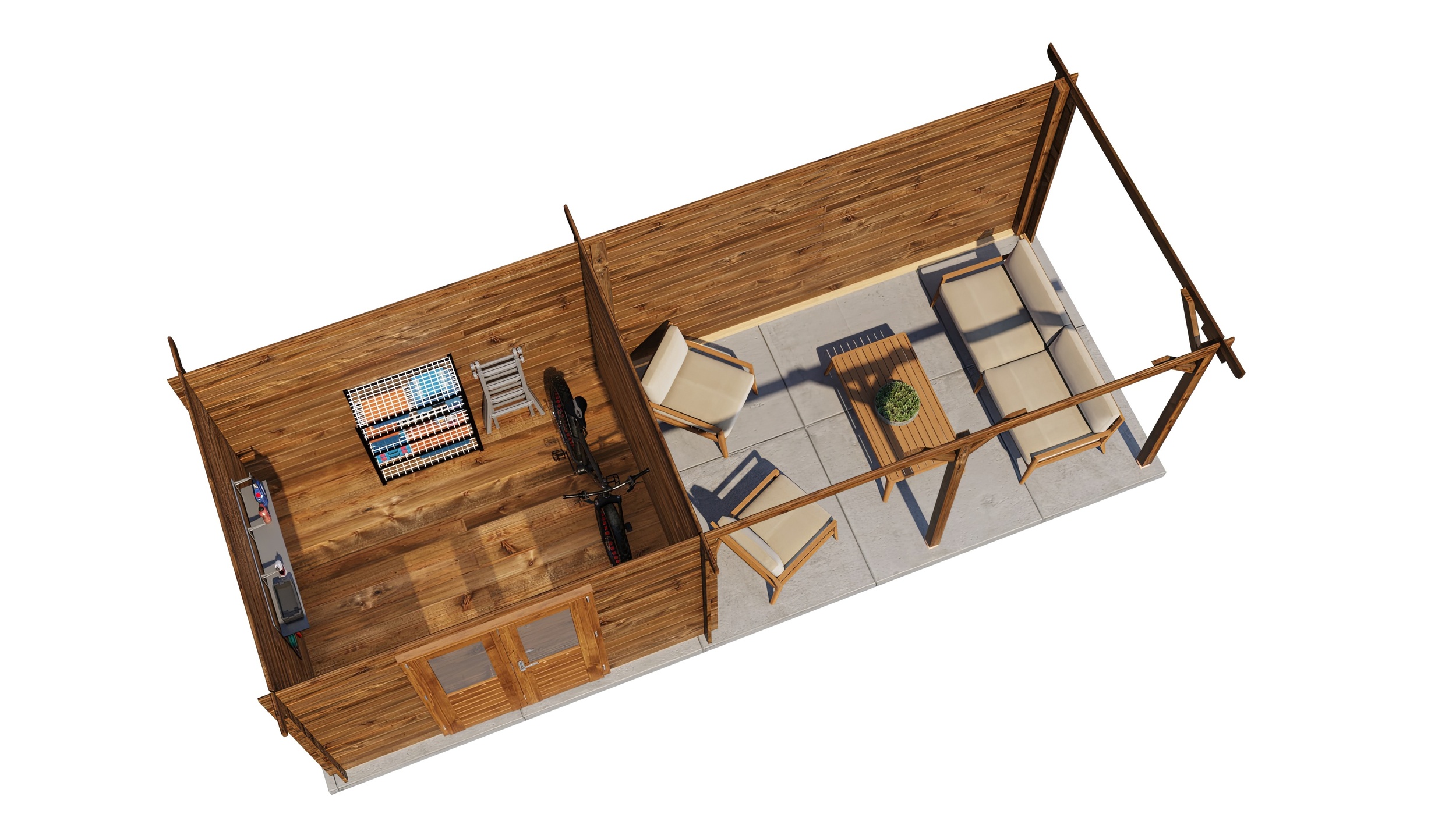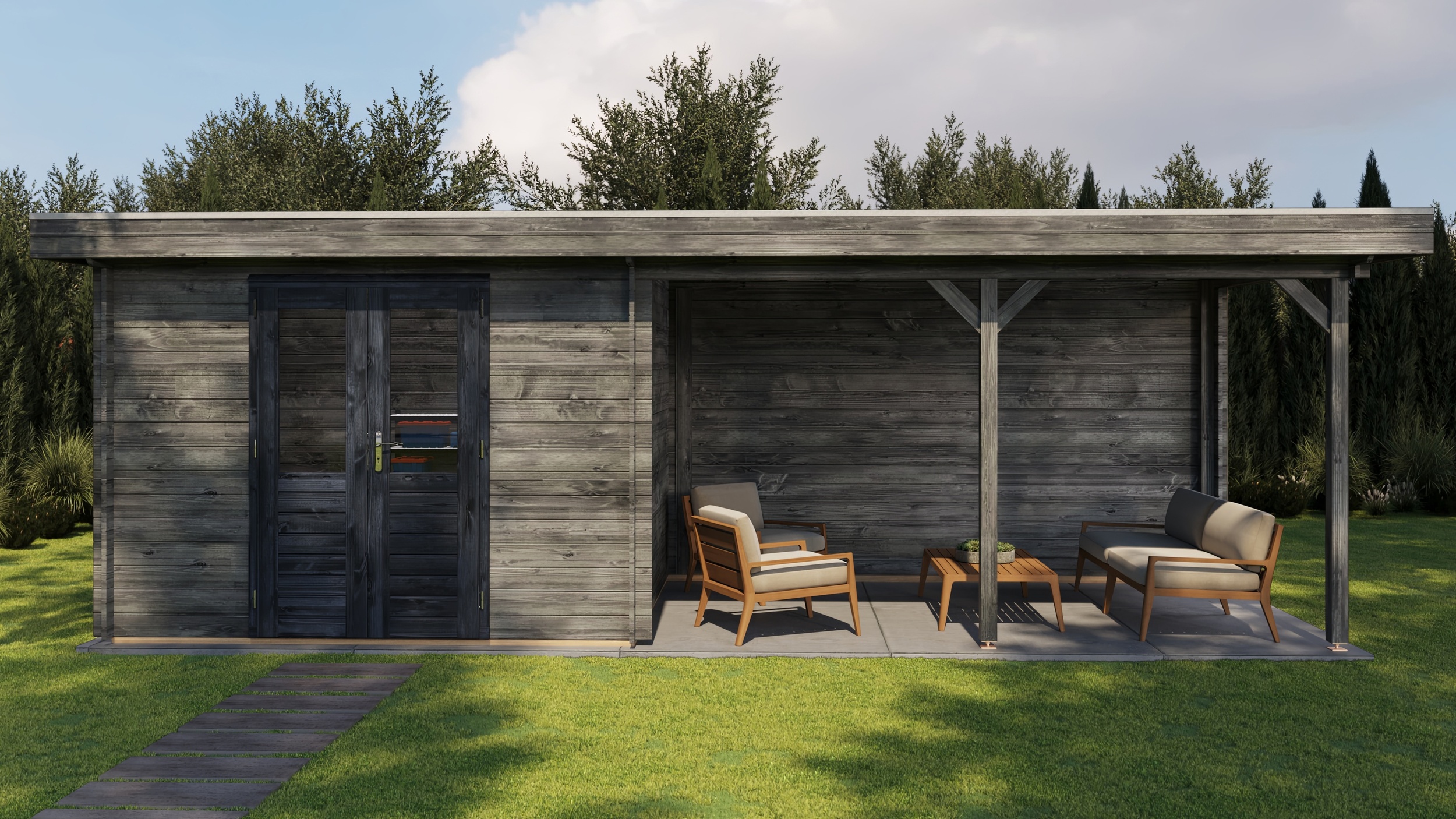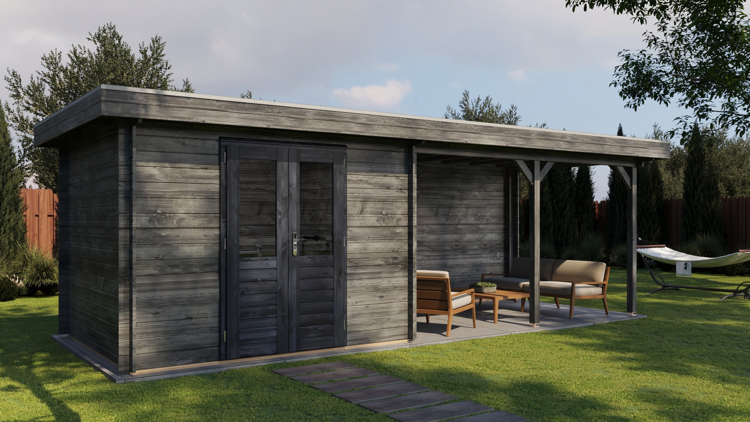 Classic Log Cabin with Veranda - Flat Roof - 28mm thick walls