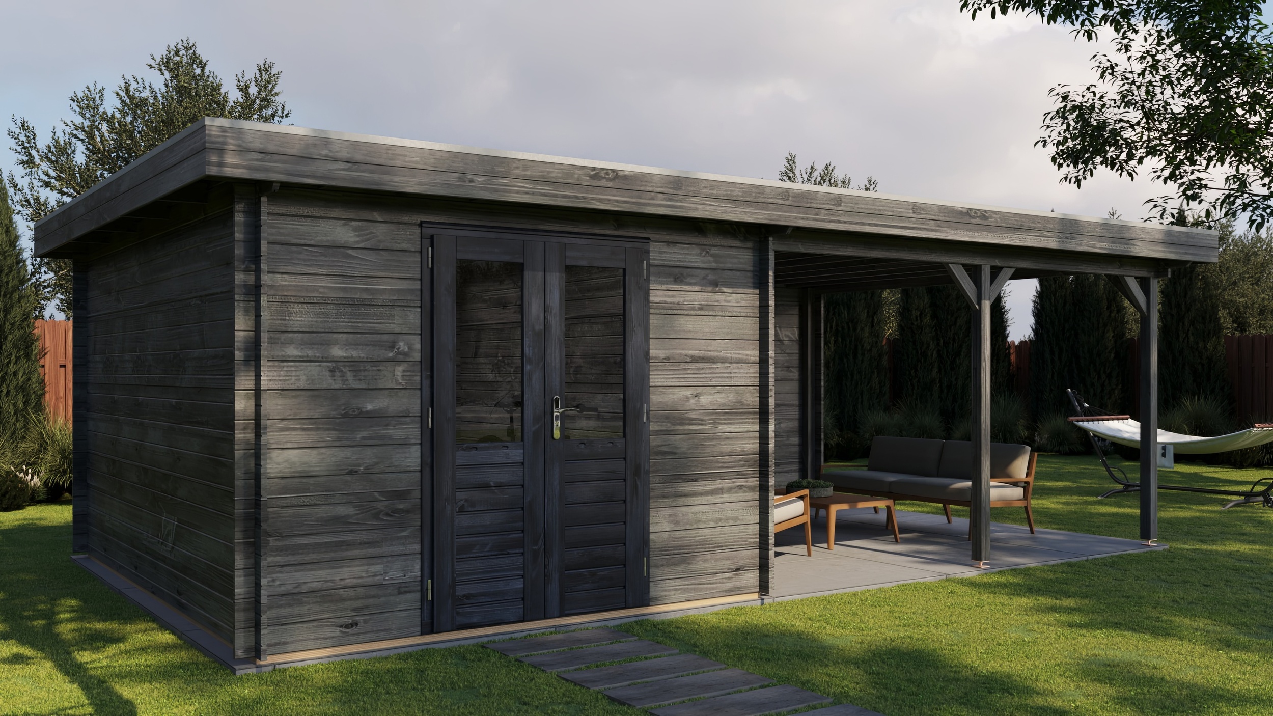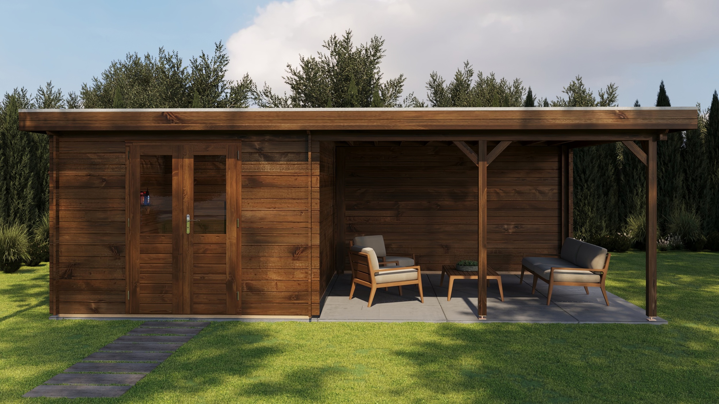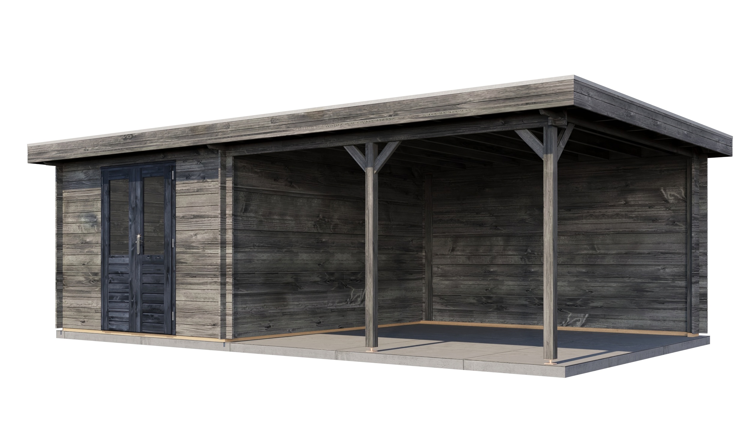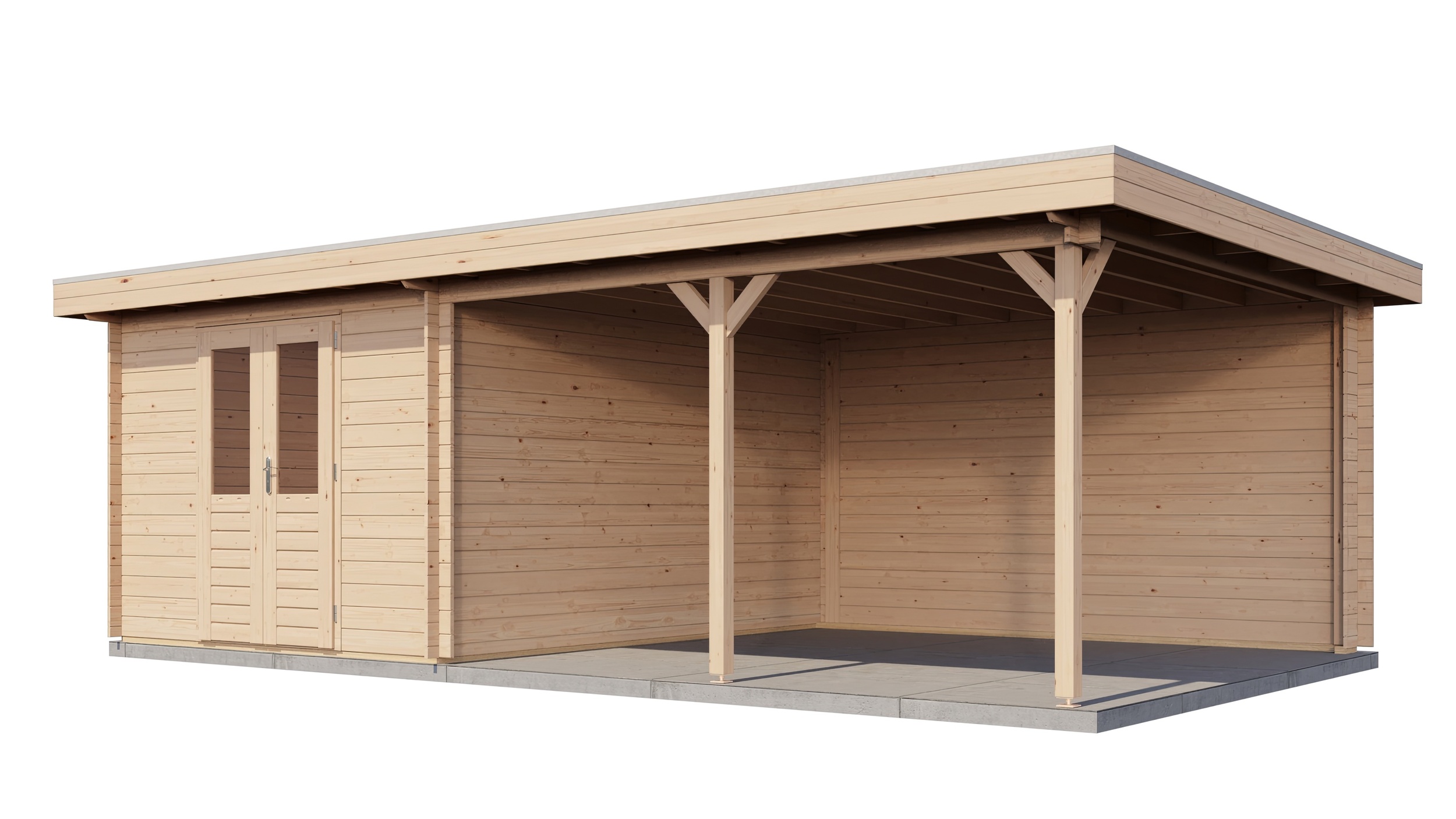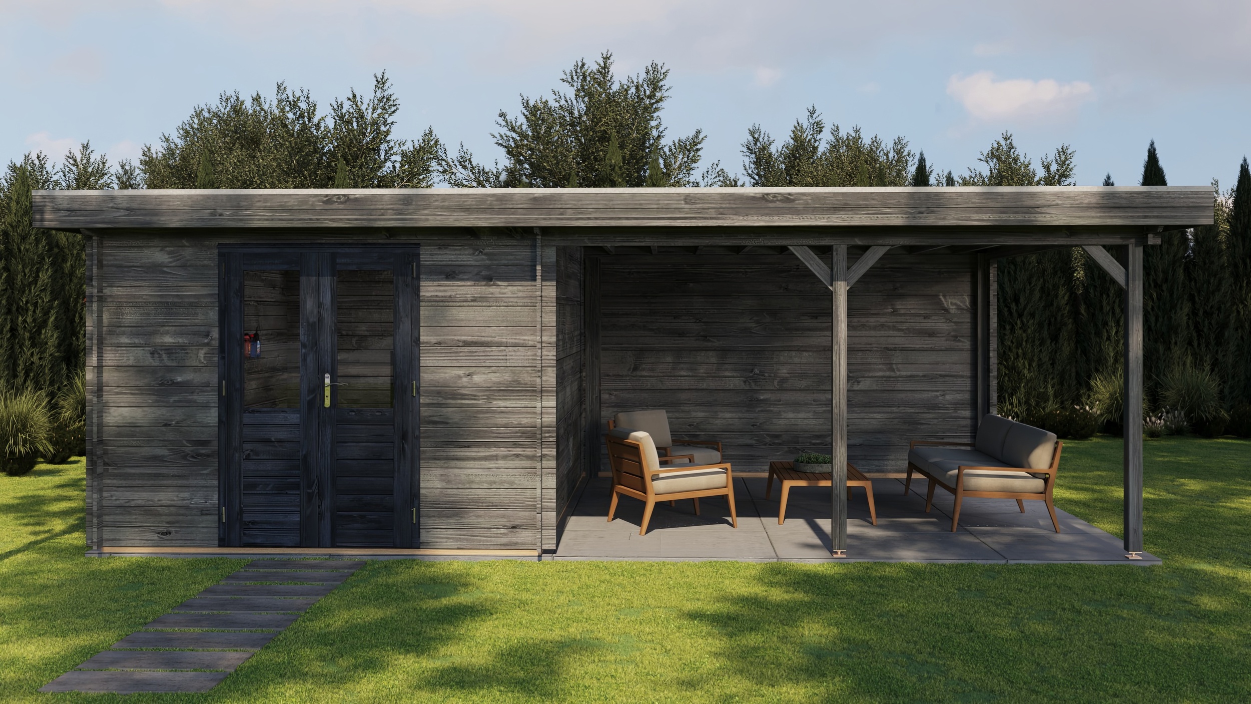 Classic Log Cabin with Veranda - Flat Roof - 28mm thick walls