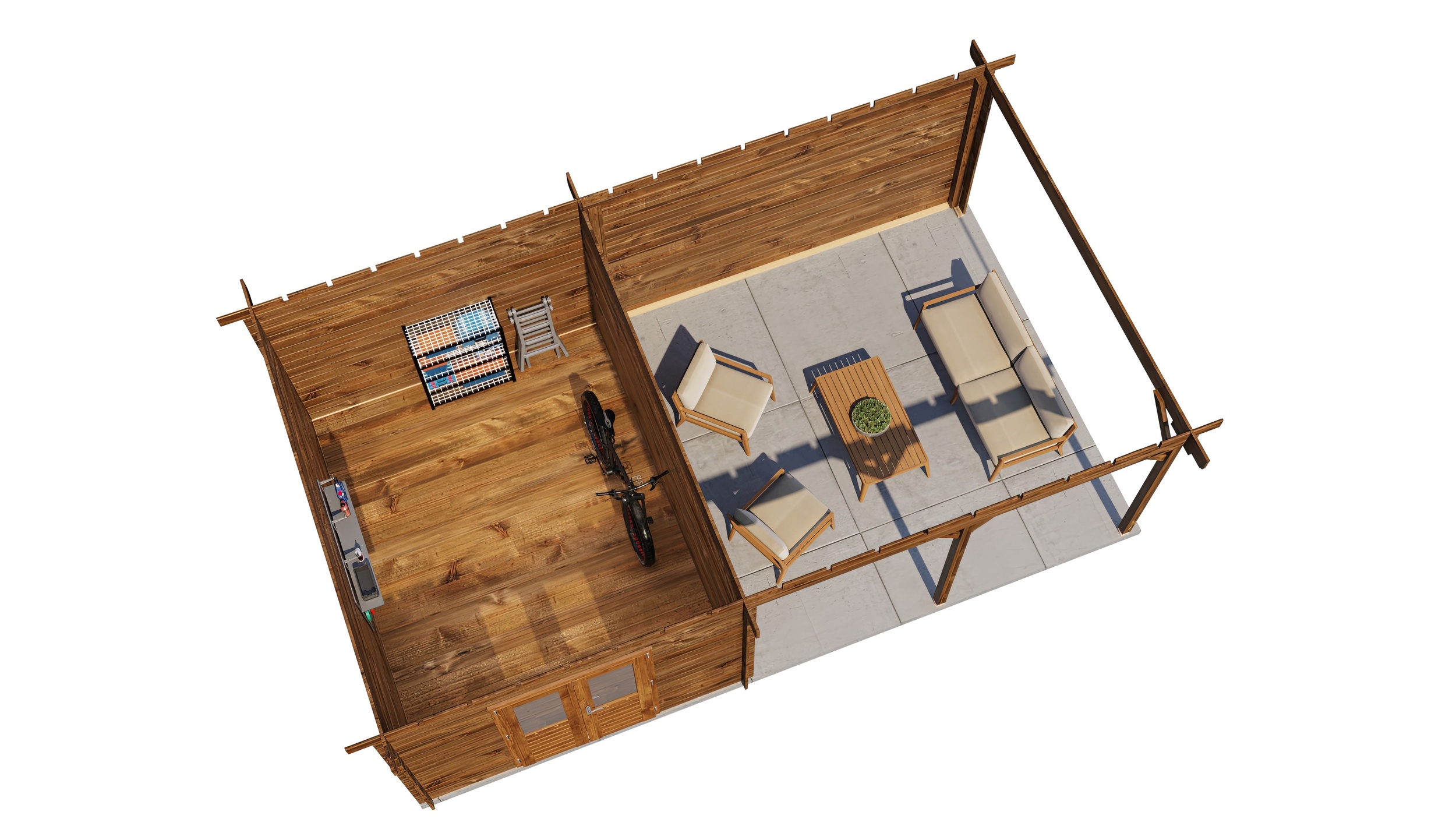 The cabin door will be hinged on the opposite side to your veranda side selection