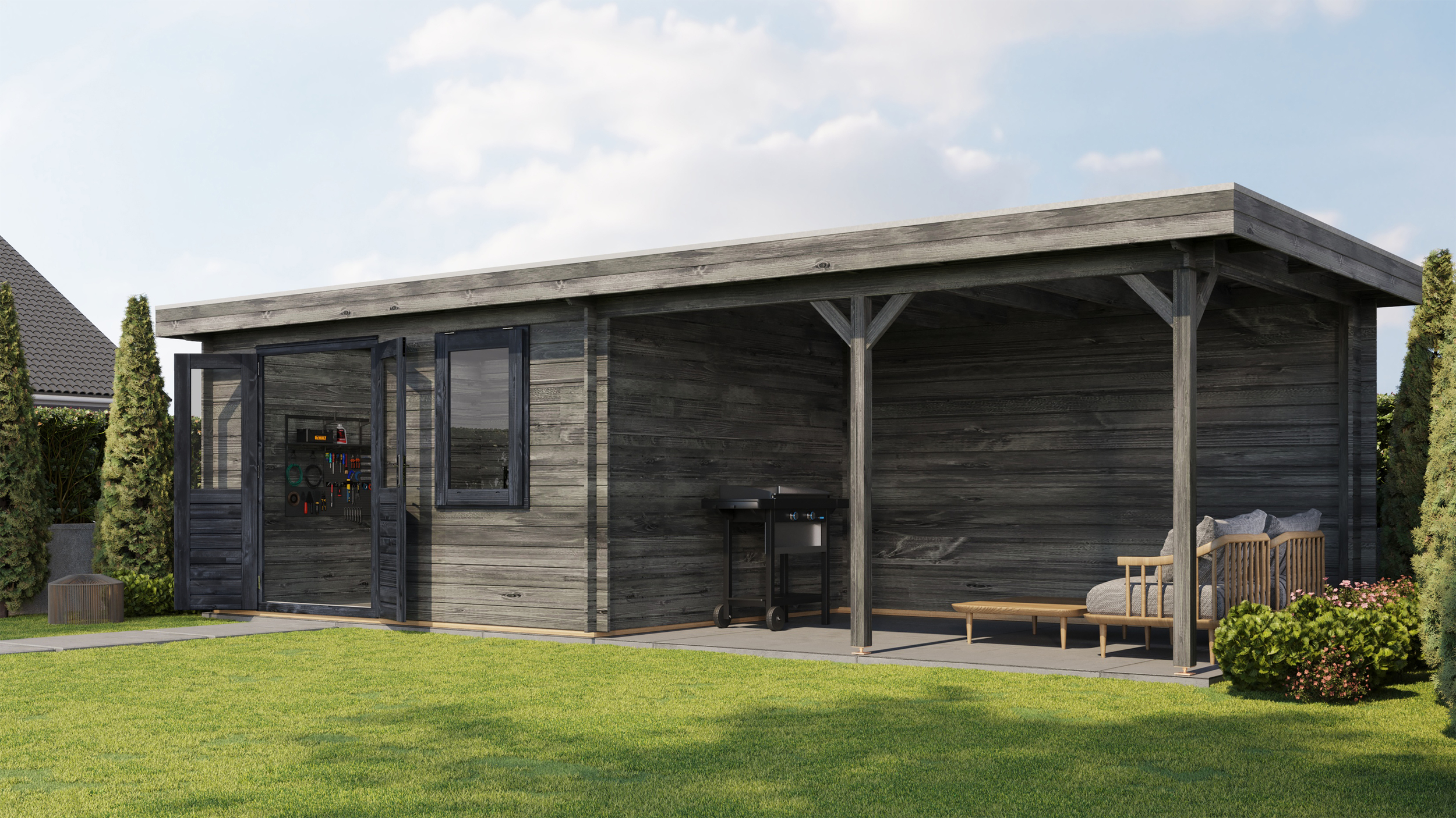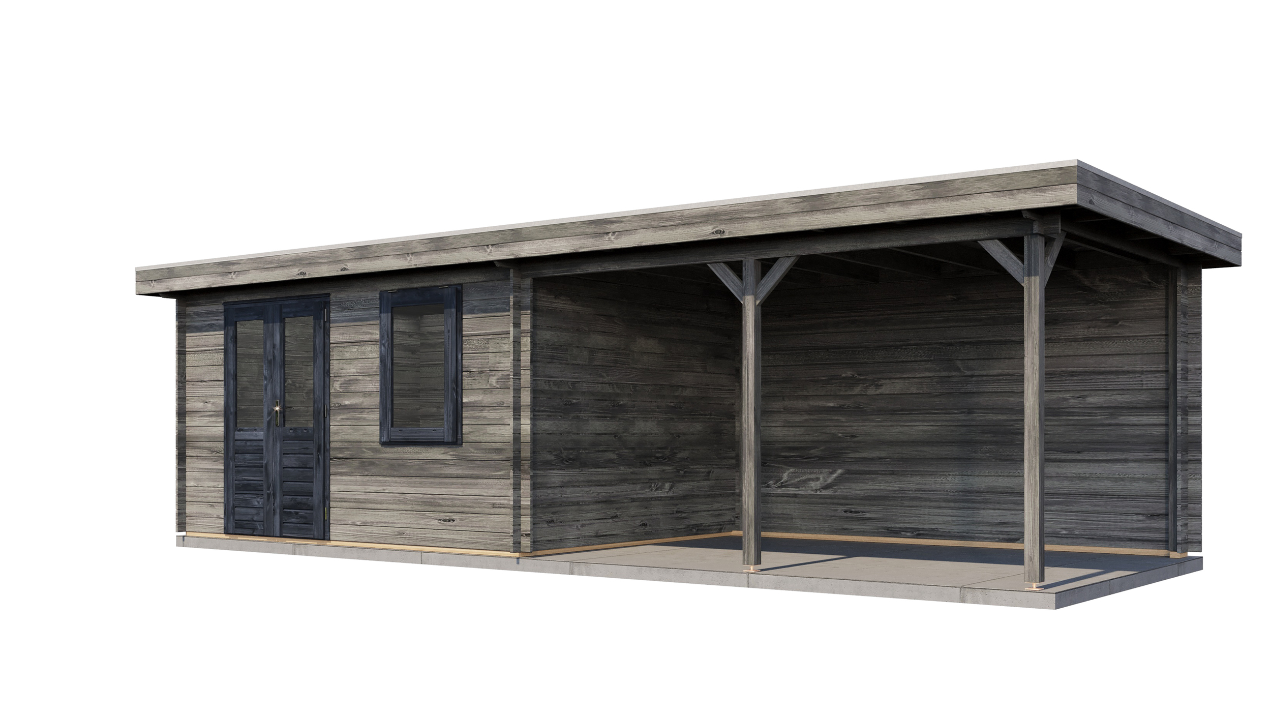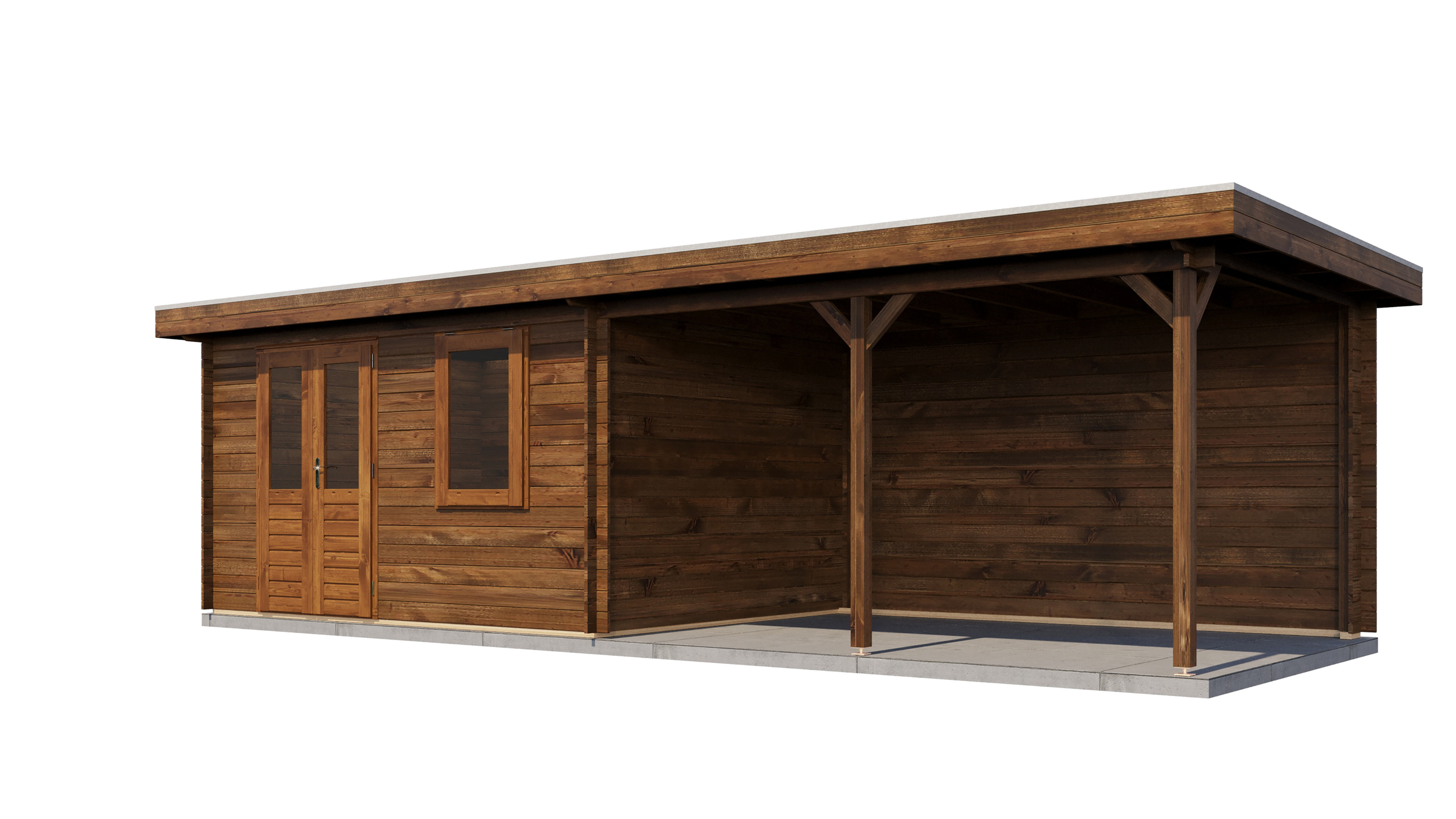 Classic Log Cabin with Veranda - Flat Roof - 28mm thick walls