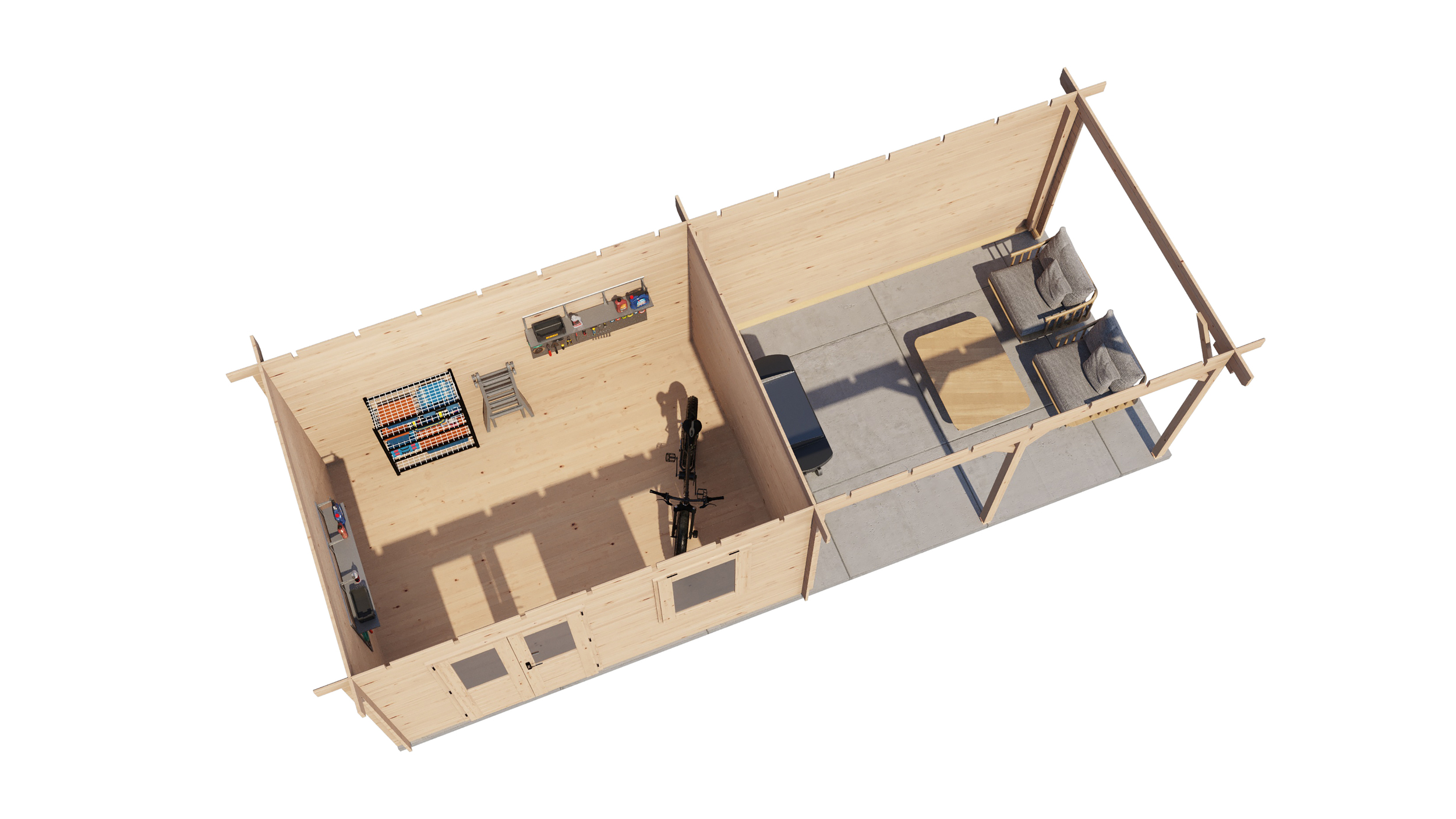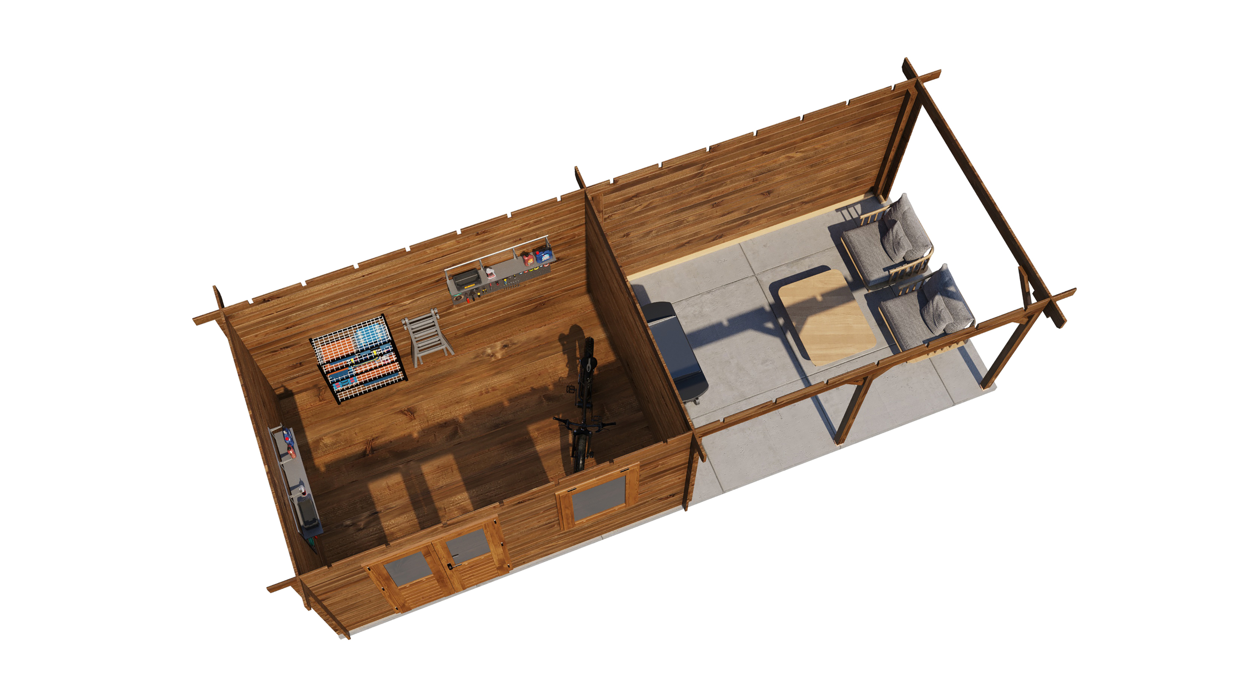 Choose to have no floor supplied or include 18mm floor boards, skirting & tanalised joists.