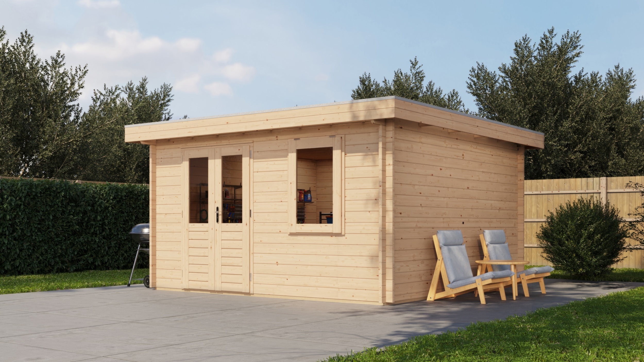 Classic Log Cabin - Flat Roof - *44mm thick walls*