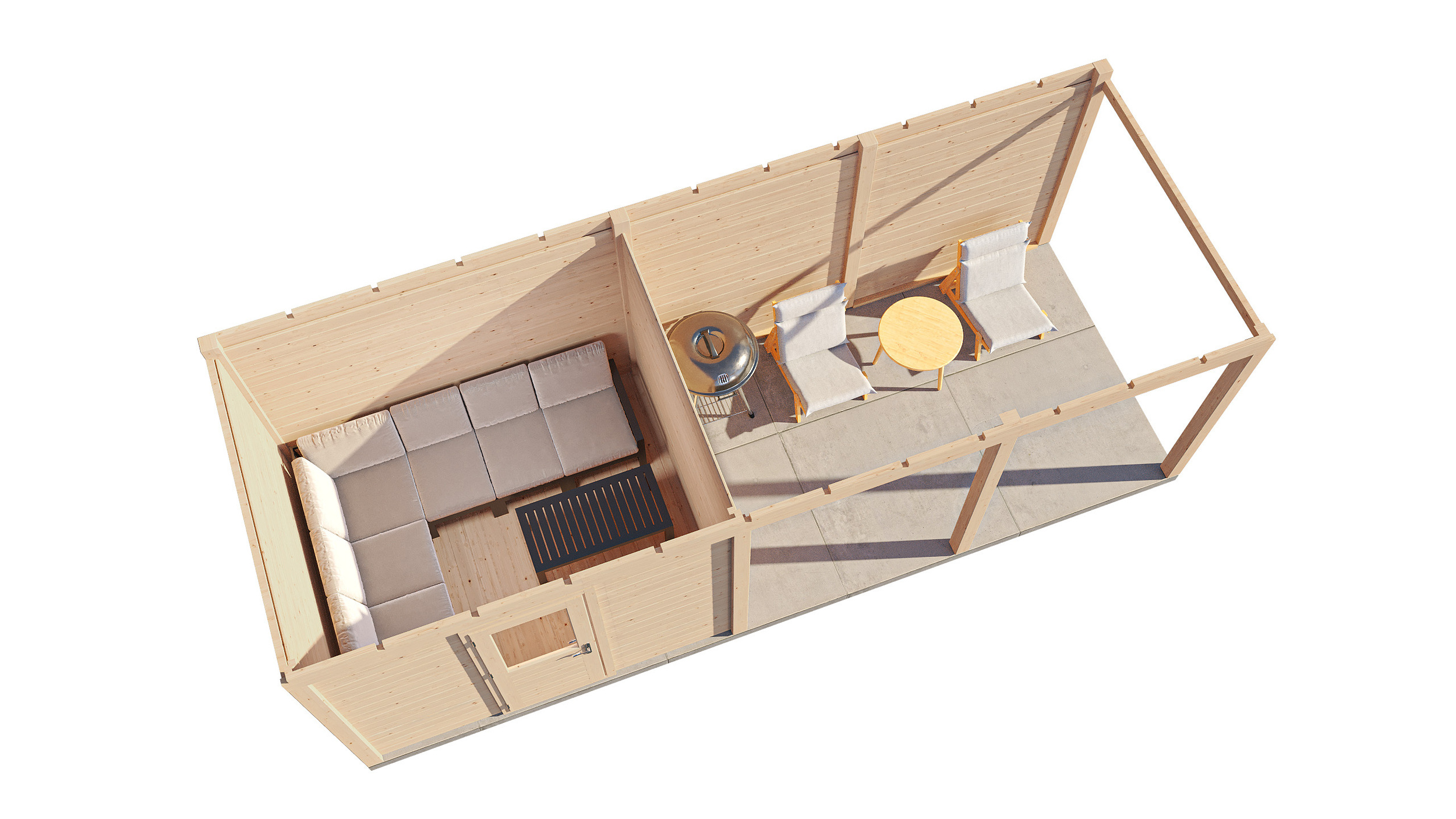 The cabin door will be hinged on the opposite side to your veranda side selection
