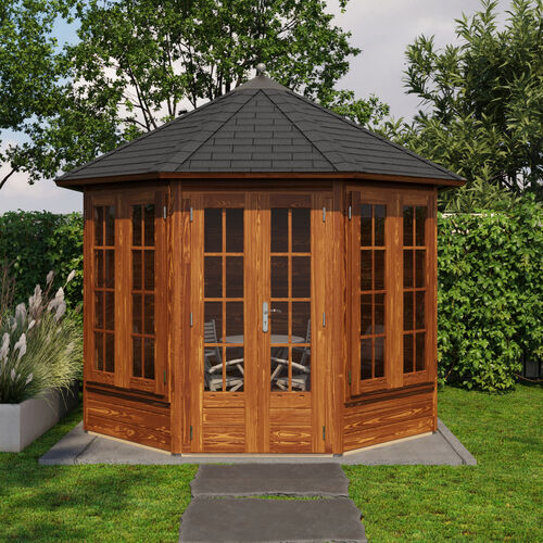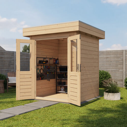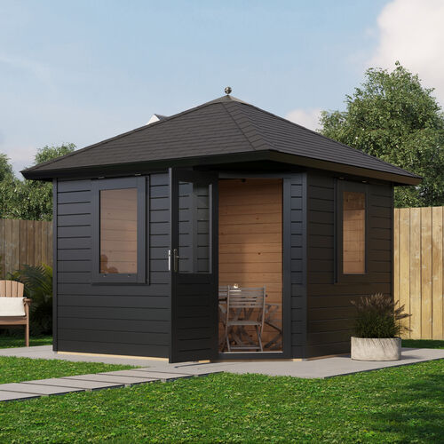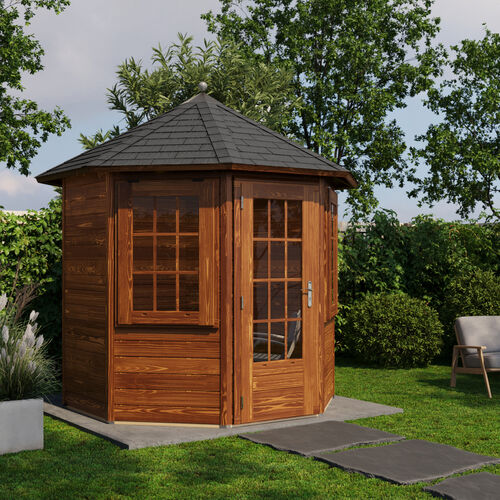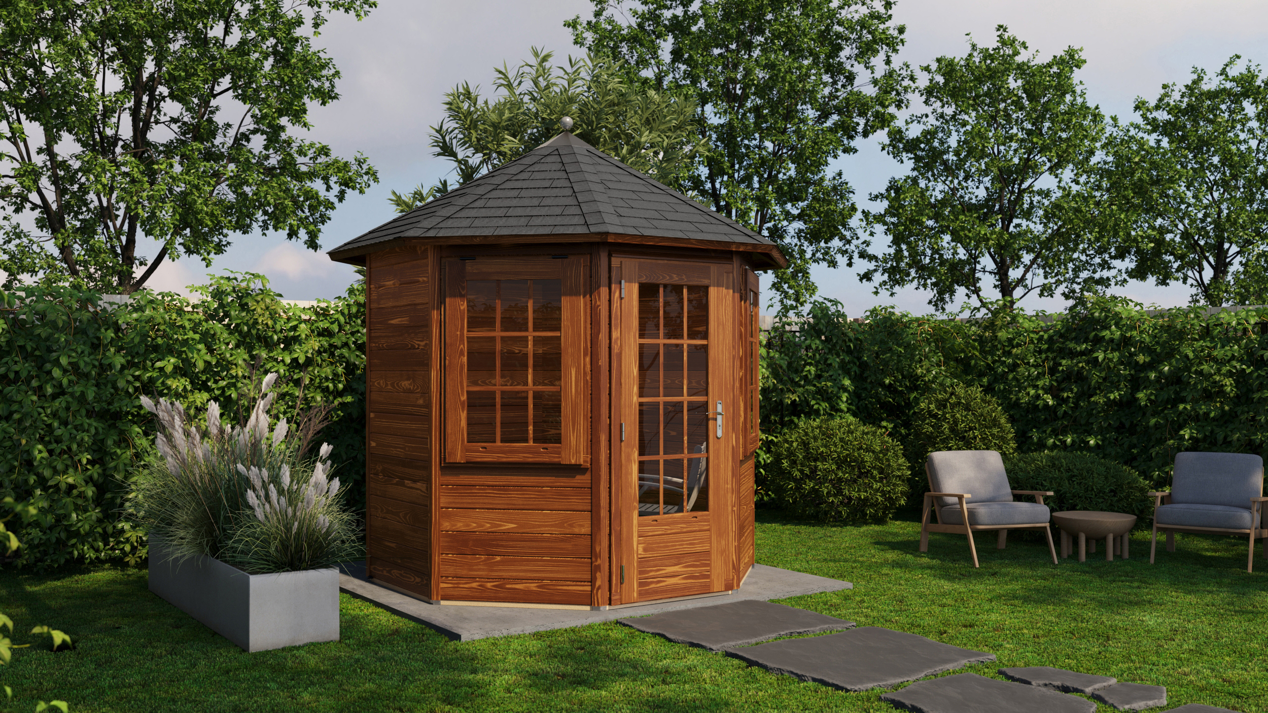 Introducing the Prima 3=1 system! A solid structure with milled wall parts that fit perfectly into the wood clad aluminium profile of the corner posts. This makes every summerhouse stronger and more durable, in all types of weather. Moreover, because no nails and screws are required, it is easy and quick to assemble. Available in a variety of 28mm or 44mm thick wall planks, with a large array of styles, these beautiful garden rooms will compliment every garden and remain strong.