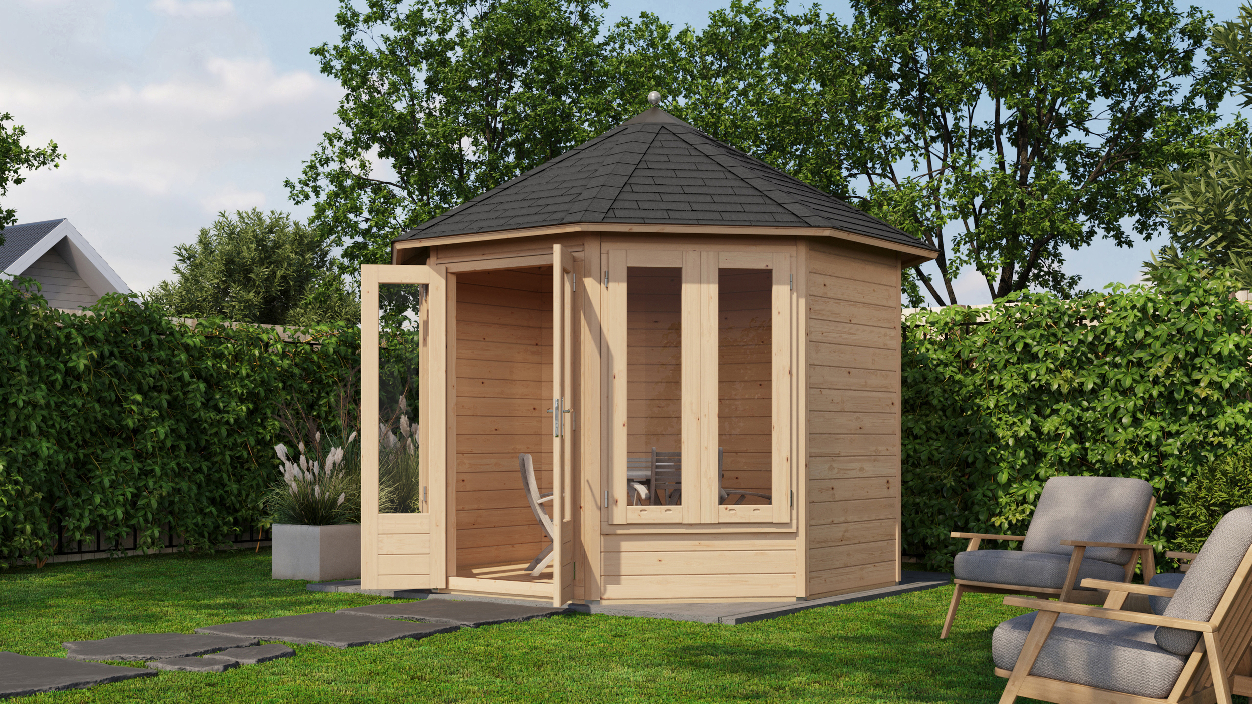 A pavilion represents a dedicated space to relax in comfort at home. Having a pavilion in your garden can allow you to connect with nature, revive hobbies, or even just enjoy an evening sunset. Creating a summer house has never been easier, with multiple benefits, affordable costs, and easy installation, thanks to the pre manufactured and pre shingled roof panels, these structures can add value to your home in multiple ways.