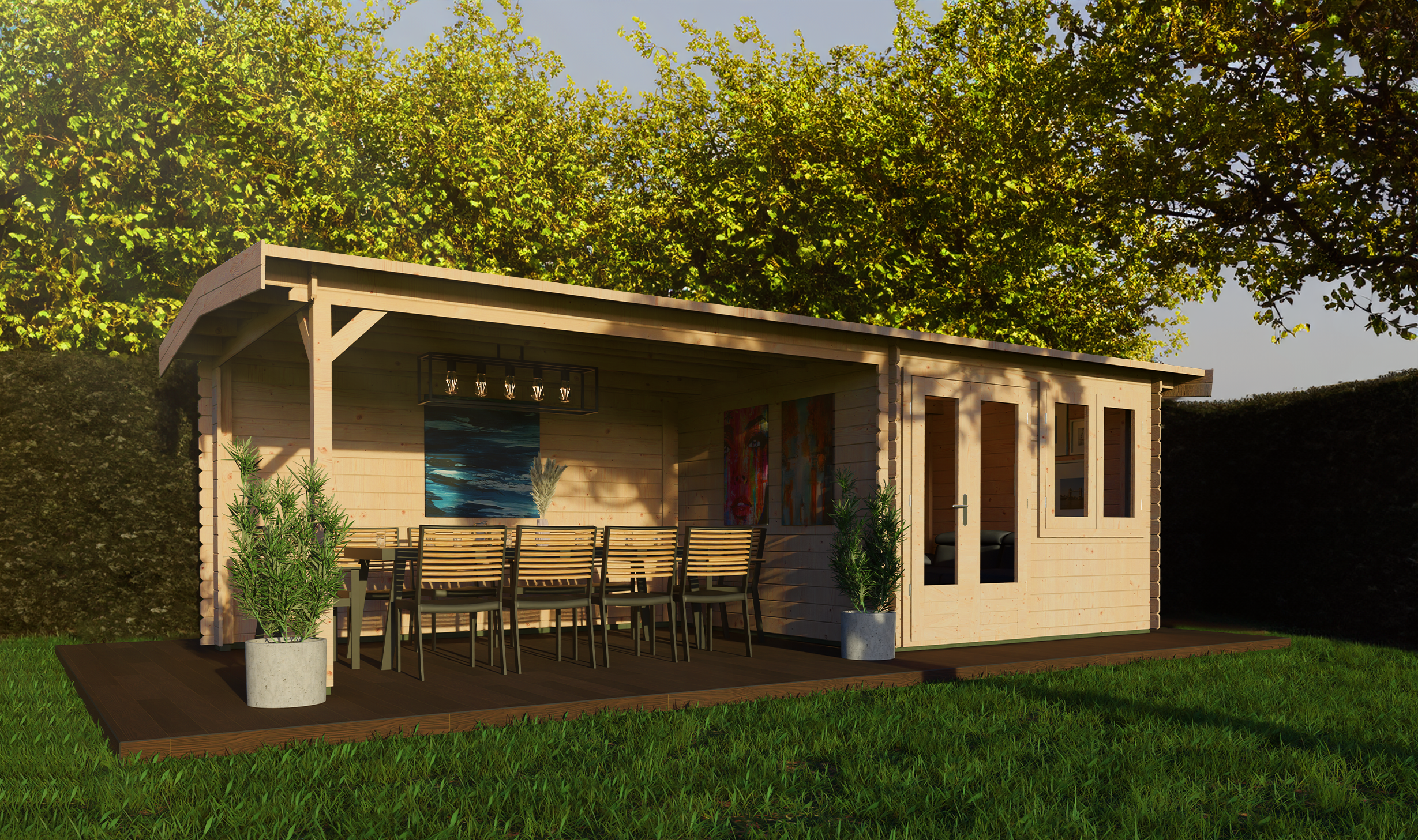 3.0mtr x 3.0mtr + 4.0mtr Veranda Apex Log Cabin Style building