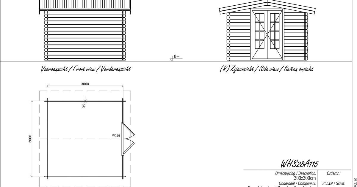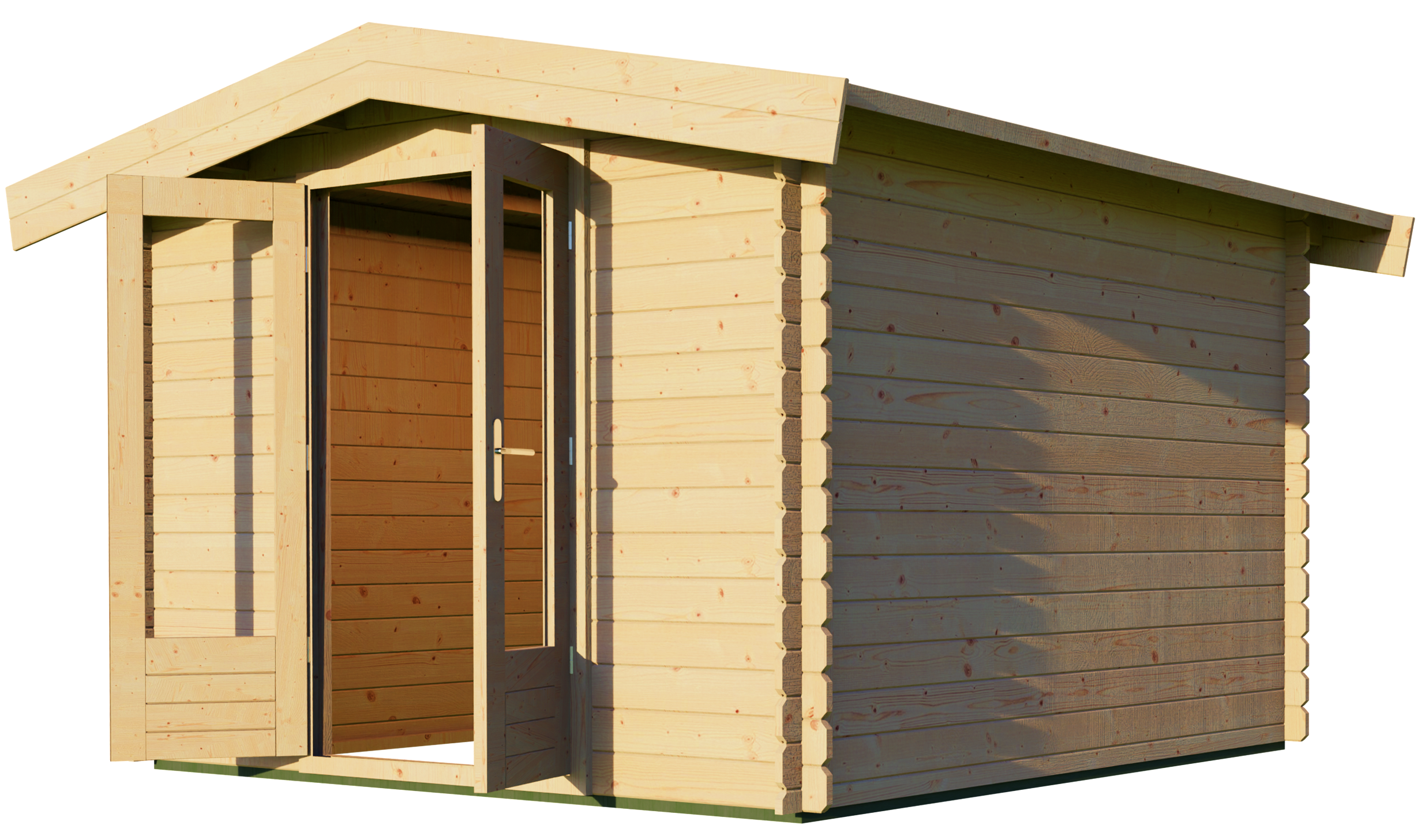 Log cabin 300x300cm - Apex roof - 28mm - 1st class kiln dry spruce - 18mm T&G Roof boards - Double glazing - Door with laminated 4,5cm thick wood - incl. 18mm T&G flooring - pressure treated foundation beams included - All hardware included