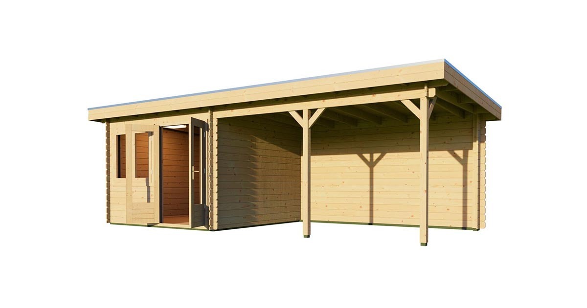 Woodpro uses first-class spruce, sourced from northern countries. This high-quality, kiln-dried wood (14 – 16%) ensures durability and structural integrity. The cabins feature robust 9 x 9 cm laminated posts with boiler pressure-impregnated bases and a stylish pent roof that has a 300 mm overhang and a subtle 3-degree angle.